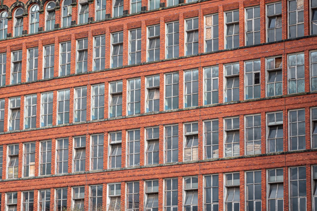 There are in fact three mill buildings, the North, East and West Mills. Strutts North Mill was built first, then rebuilt following a fire, it now houses a museum. The West Mill, on the other side of the road (and linked with a bridge) is in use by Courtaulds and the East Mill, which had to be built over the river on cast iron pillars, as they had run out of land, seems to stand mostly empty and is clearly in need of some TLC.