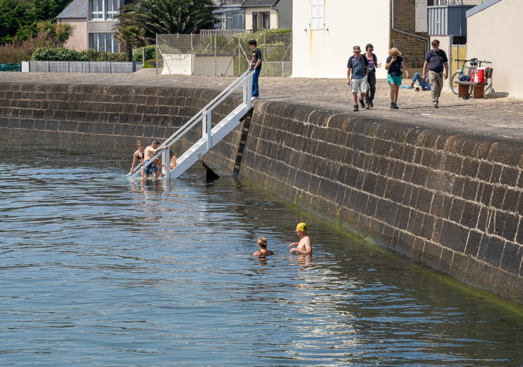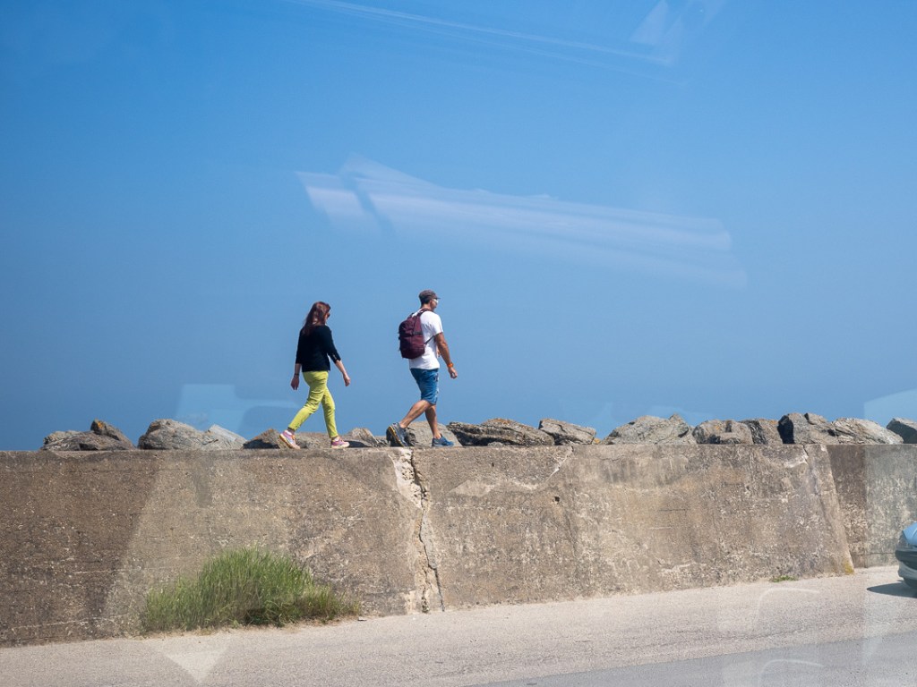 It was a nice day, and on our return to the aire where we had left Fufu for our overnight stay, we passed some people cooling off in the sea.