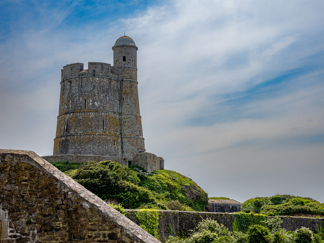 There are two defensive towers, one on the island of Tatihou and a similar one at the end of a peninsula to the south, La Hougue. Together they form some of the “Vauban Fortifications”, a listed UNESCO World Heritage Site. The Marquis of Vauban, was appointed “Commissaire Général des Fortifications” in 1655. There are 12 groups of such fortifications around the perimeter of France.
