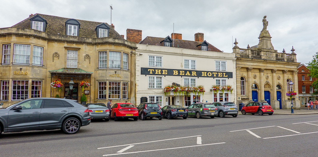 The Bear Hotel (left) and the Corn Exchange (far right)