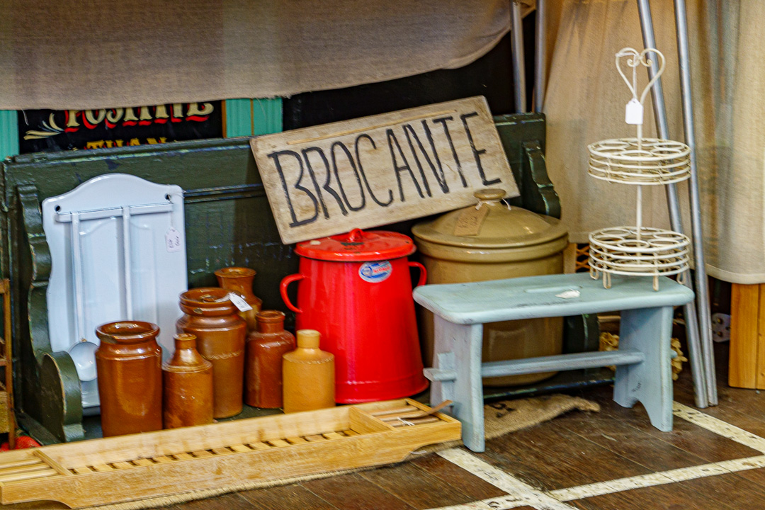 Inside, there were many different stallholders with a wide range of goods, but we didn’t find an “essential purchase” on the day. Interestingly, there was a french “Brocante” sign, which advertises the equivalent commercial activity in France and translates as “Flea Market”.