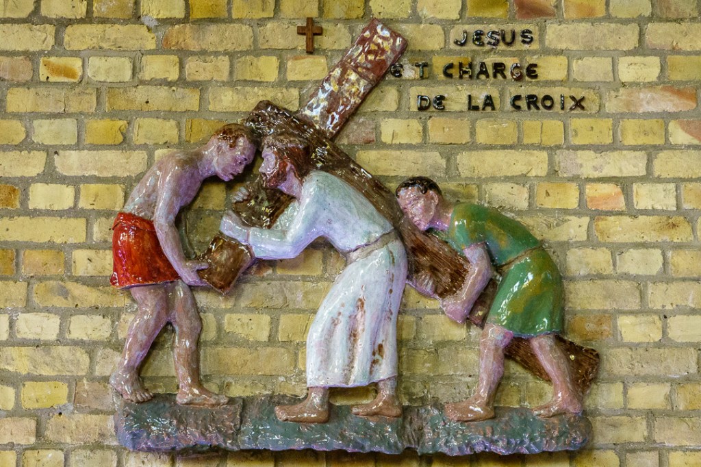 The ceramic, 3D Stations of the Cross are all beautifully made: