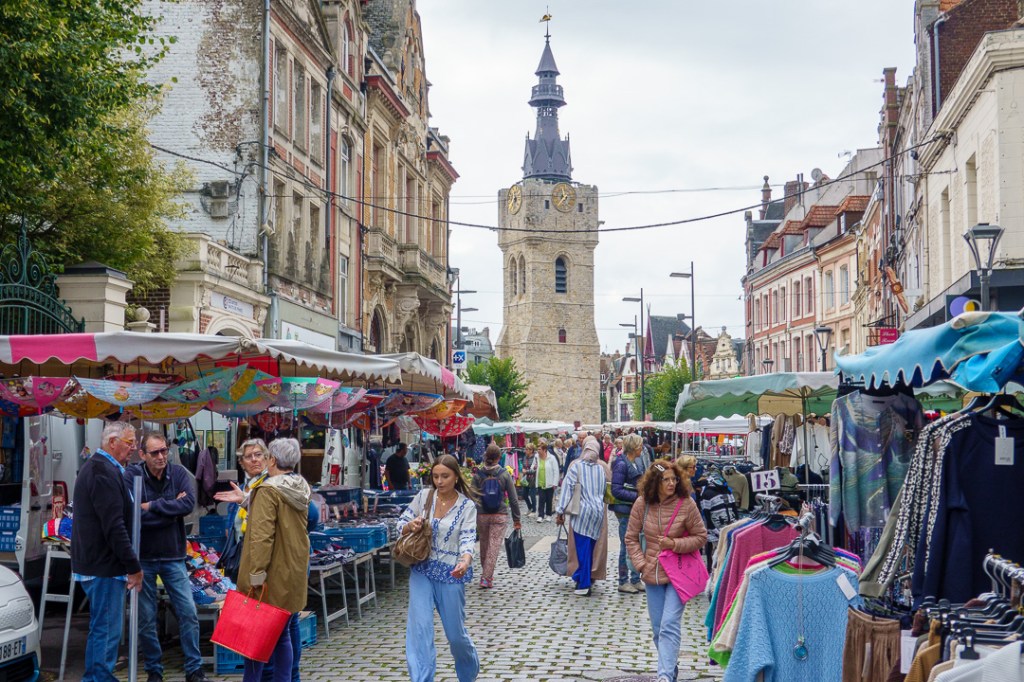 Monday is market day in Béthune. A huge range of things are offered for sale, even household furniture in addition to the usual fresh food and clothing etc.