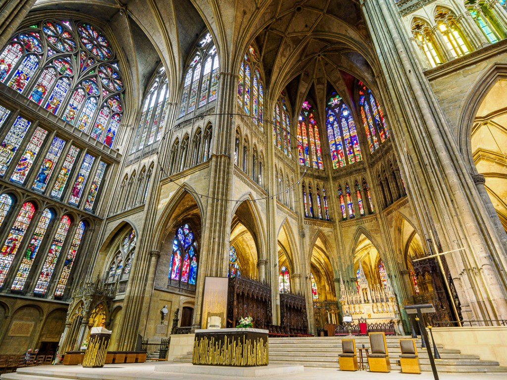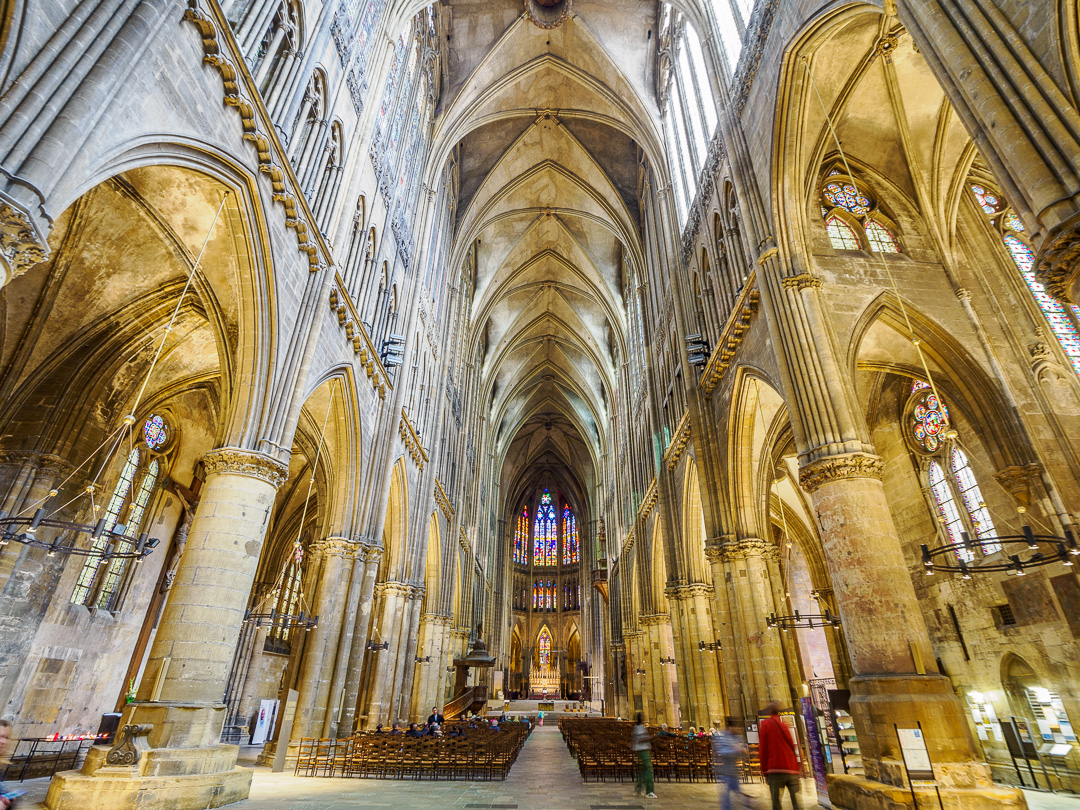 The city of Metz is most famous for its 800 year old gothic cathedral which is extremely tall and very ornate, with astonishingly detailed stone carvings everywhere you look.