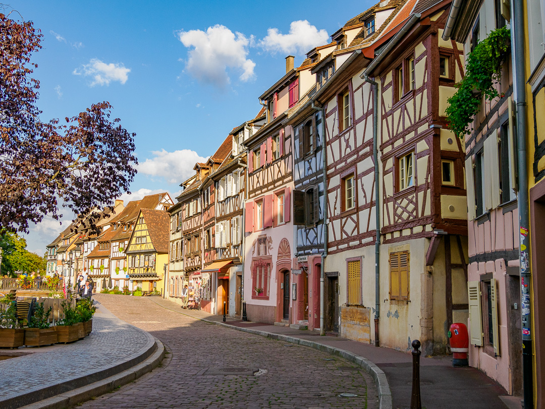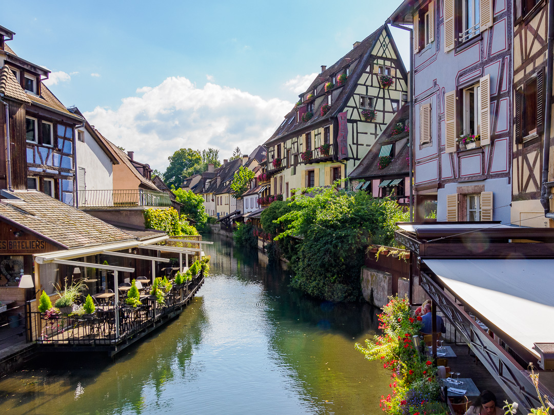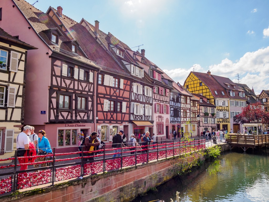 Colmar is a town in the Grand Est Region of north east France. The area of the centre-ville known as “La Petit Venise” is very picturesque with its beautiful timber-framed buildings and canals. As a result, it is a honey-pot for tourism, …and very busy.