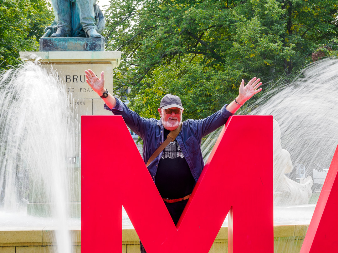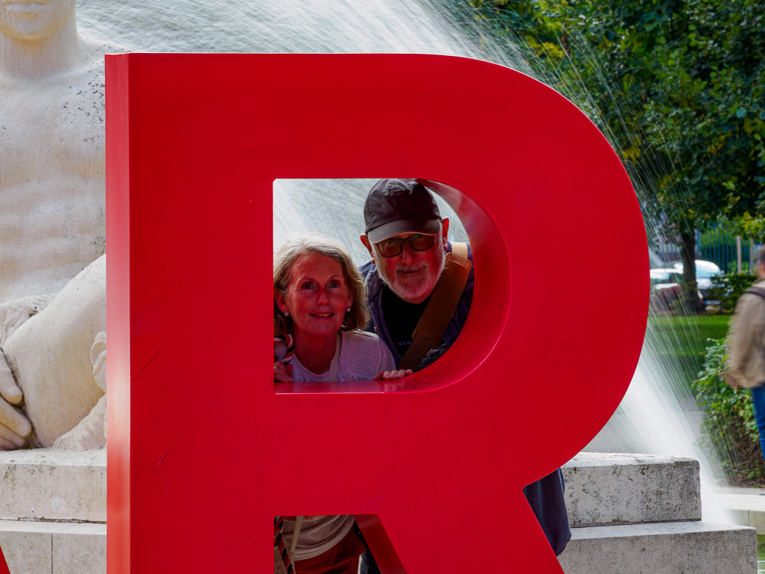 Jeeves, Michelle and Layla made the most of the large place-name letters in front of the fountains.