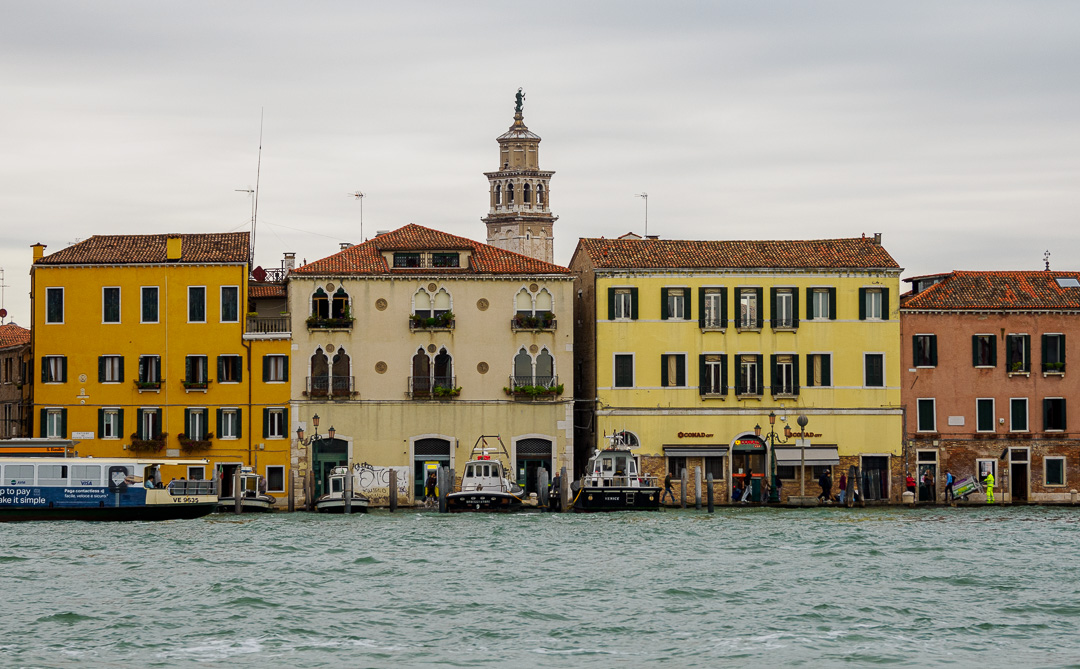 The ferries and all other traffic on the lagoon, travel at speeds which cause a lot of wash, making the disembarking in Venice, interesting to say the least. The boat was going one-way whilst the pontoon landing platform was going another.