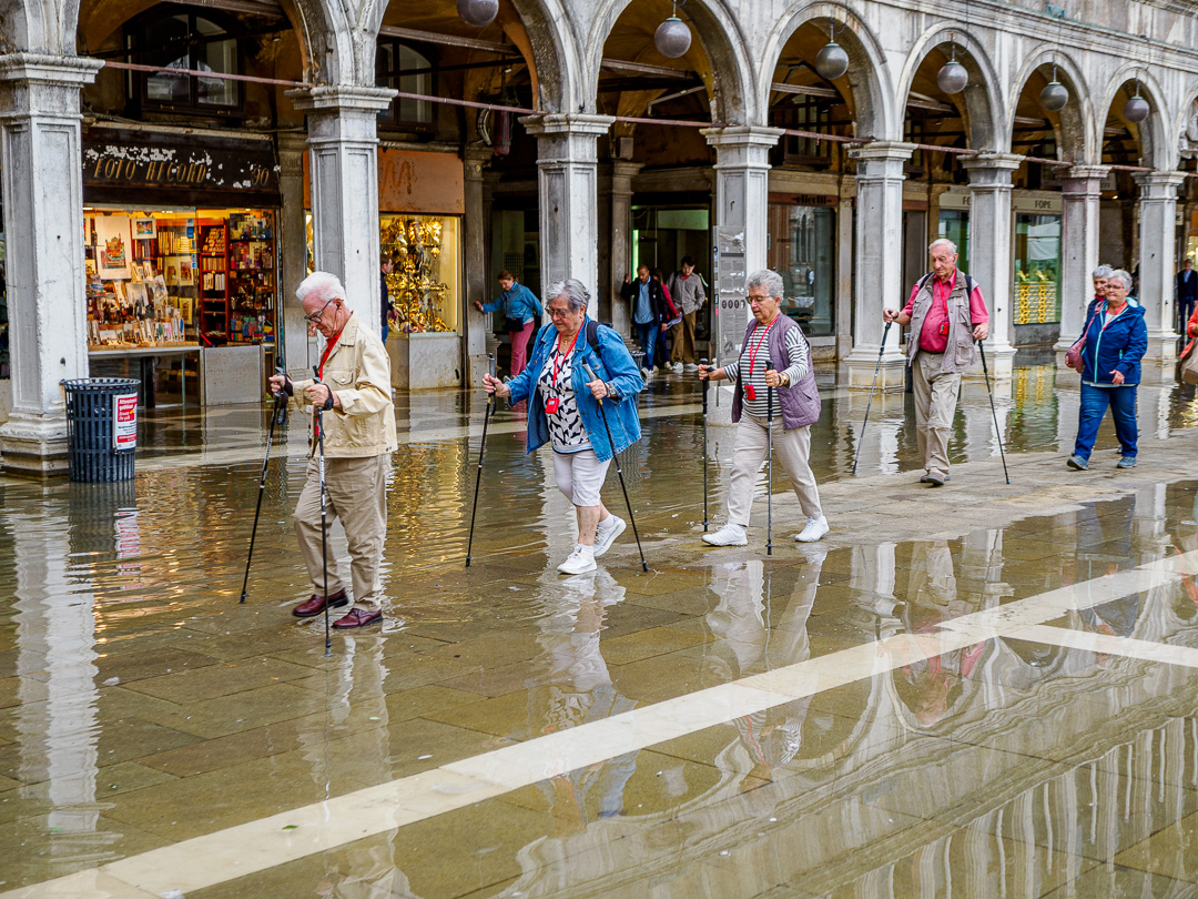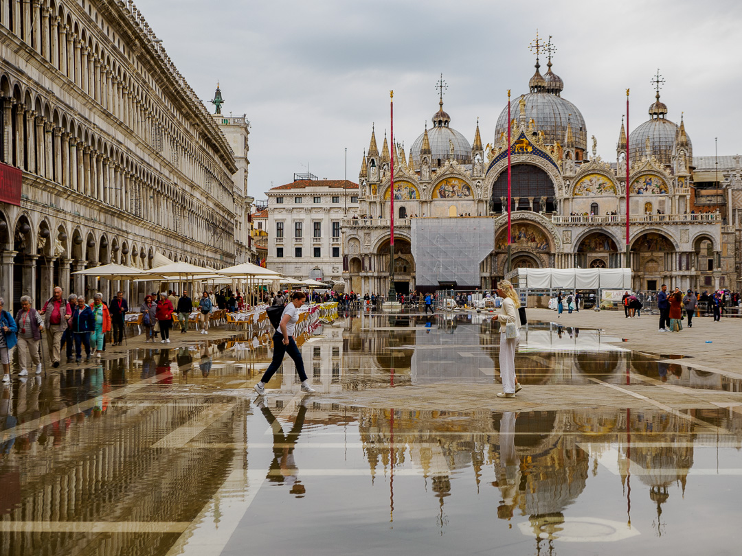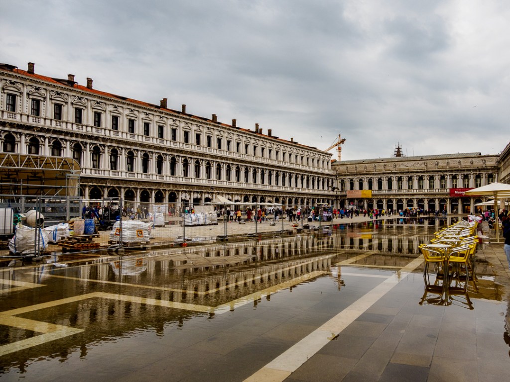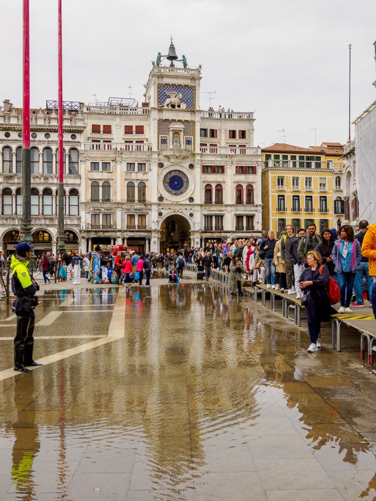 We visited St Mark’s Square and at the time, the tide was high enough to cause a few problems for pedestrians wanting to get across, especially as part of the square is fenced off because there is some maintenance work being done: