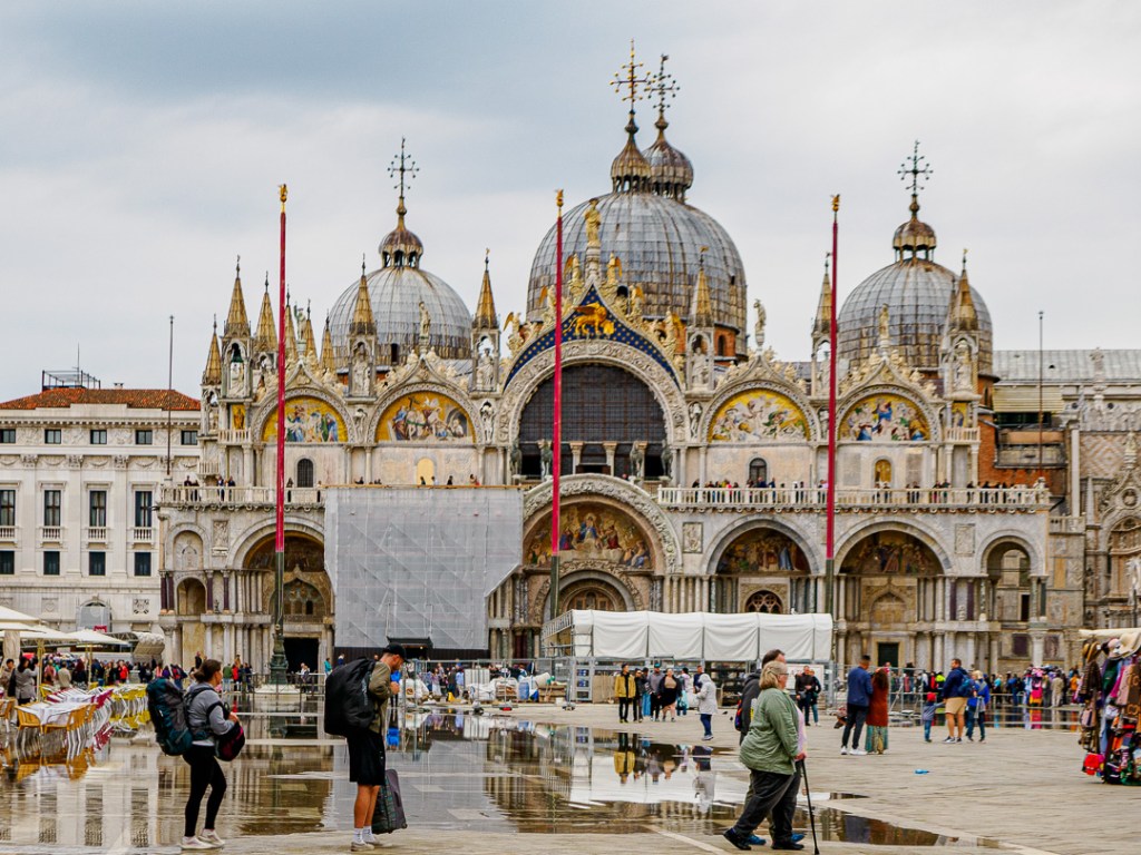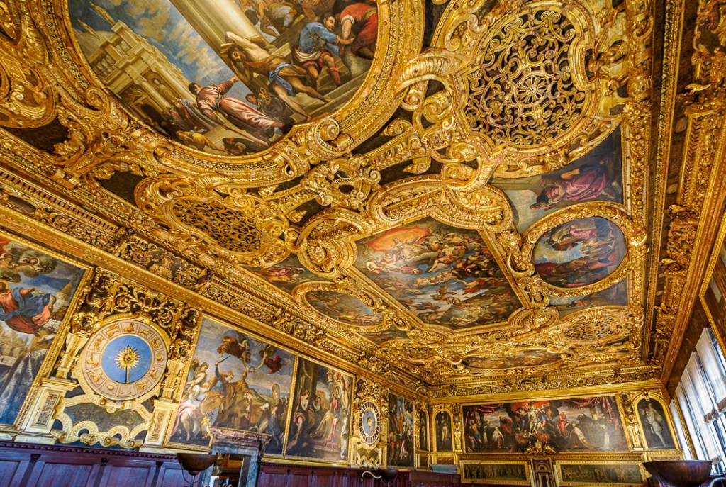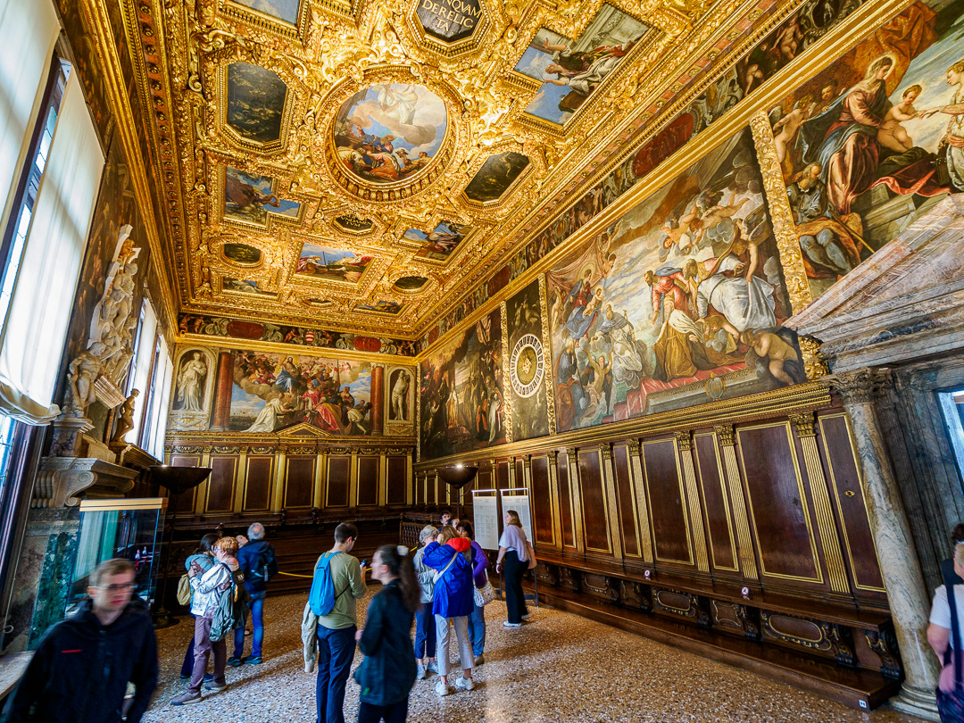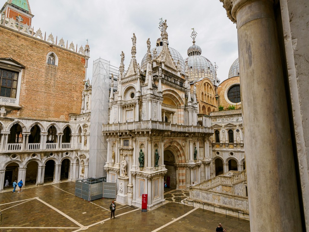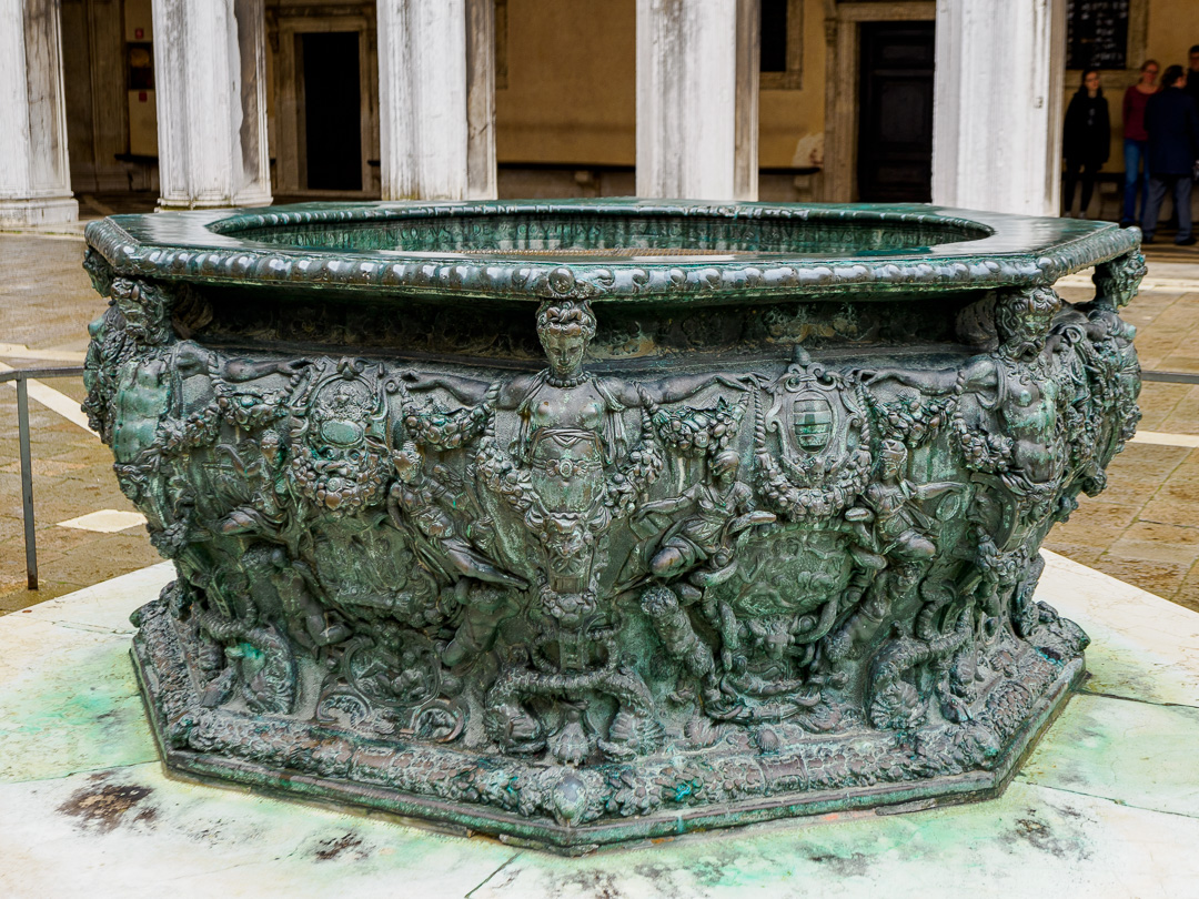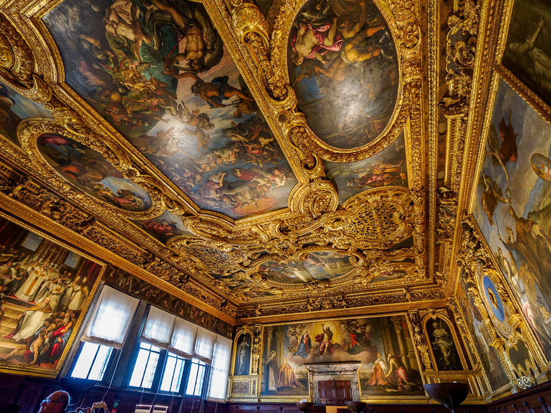A wet day was forecast, so we had booked tickets to tour the Doge’s Palace. Unlike yesterday, when we just wandered around, we made our way straight to the palace, just off St. Mark’s Square, passing through some of the poshest shopping streets along the way. Most of the high-value brands are represented:
