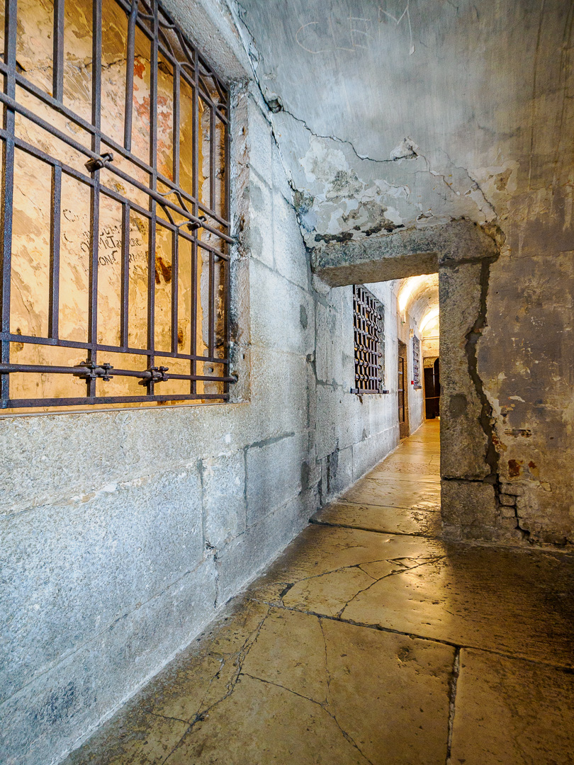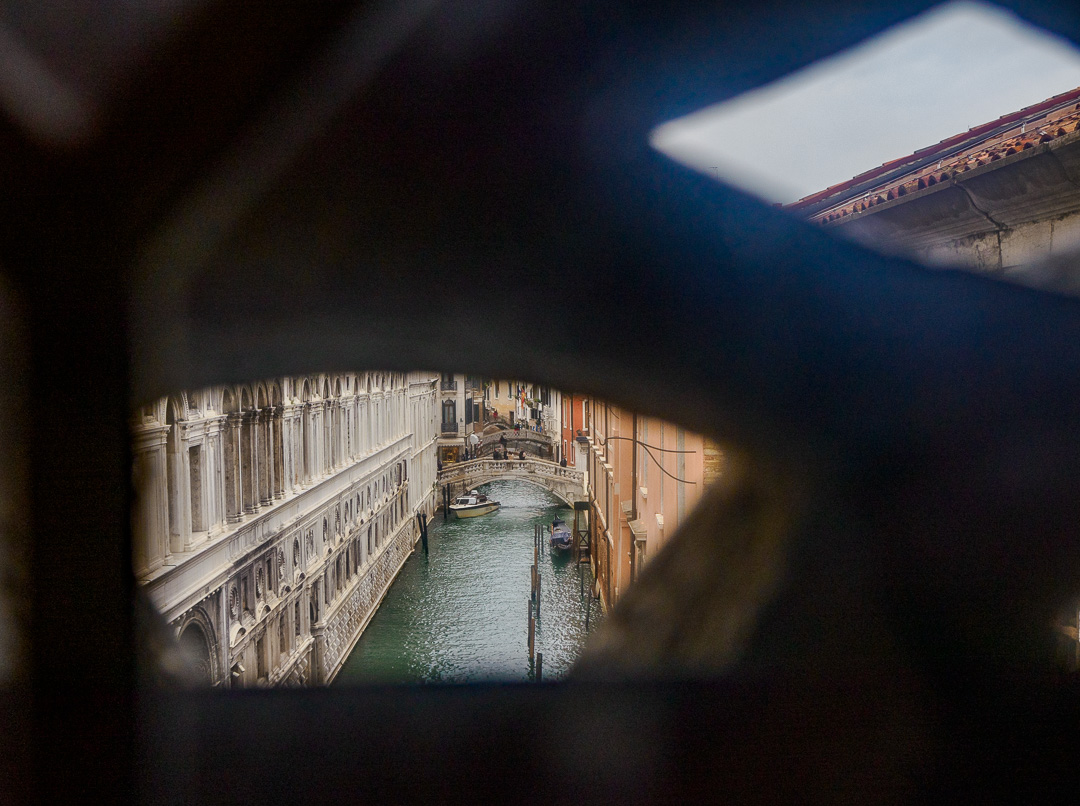 As with many such buildings, the palace was also a prison, housing the unfortunate people in the attic area, but as a result of overcrowding the mortality rate was high, so they built a purpose-built prison on the other side of the canal with a bridge to it; the “Bridge of Sighs”. We crossed the bridge, which has windows on each side, affording the prisoners a last view of the outside world.