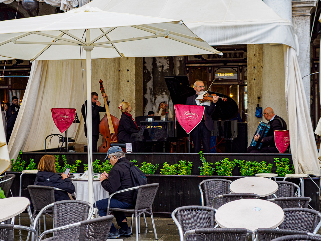 …and many more. We walked through the arcade around the edge of St Mark’s Square, and passed Cafe Florian, where live music was being played.