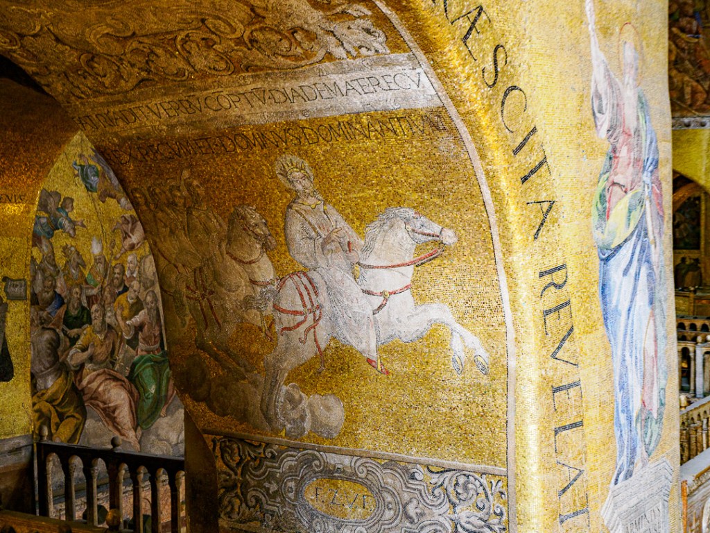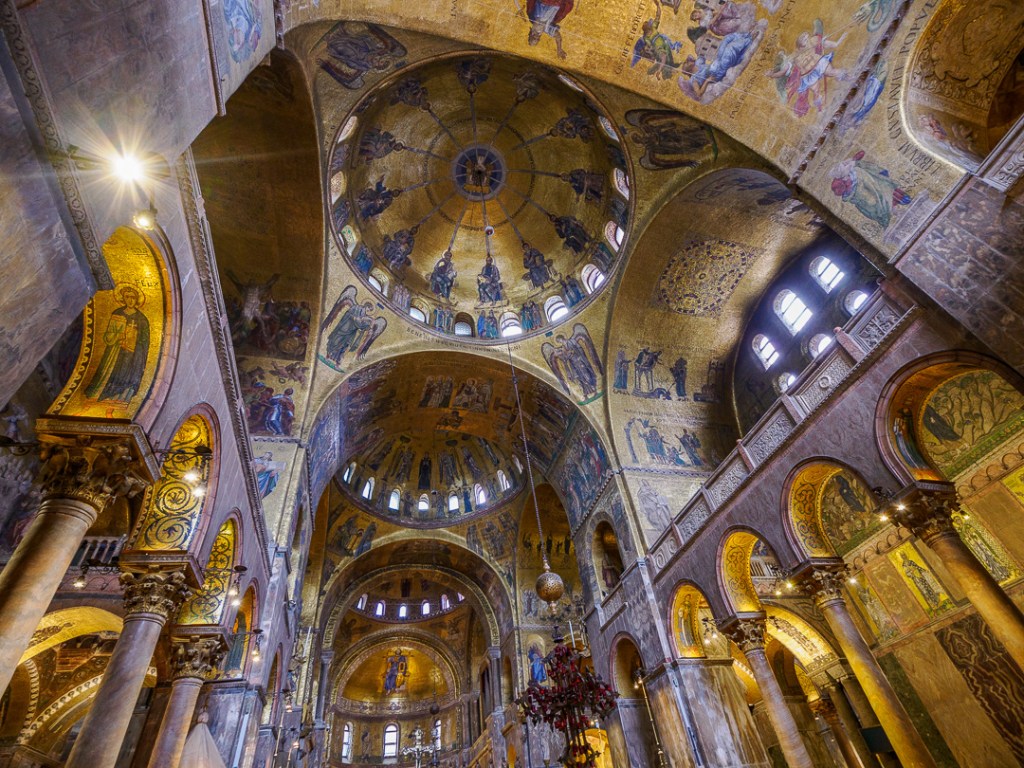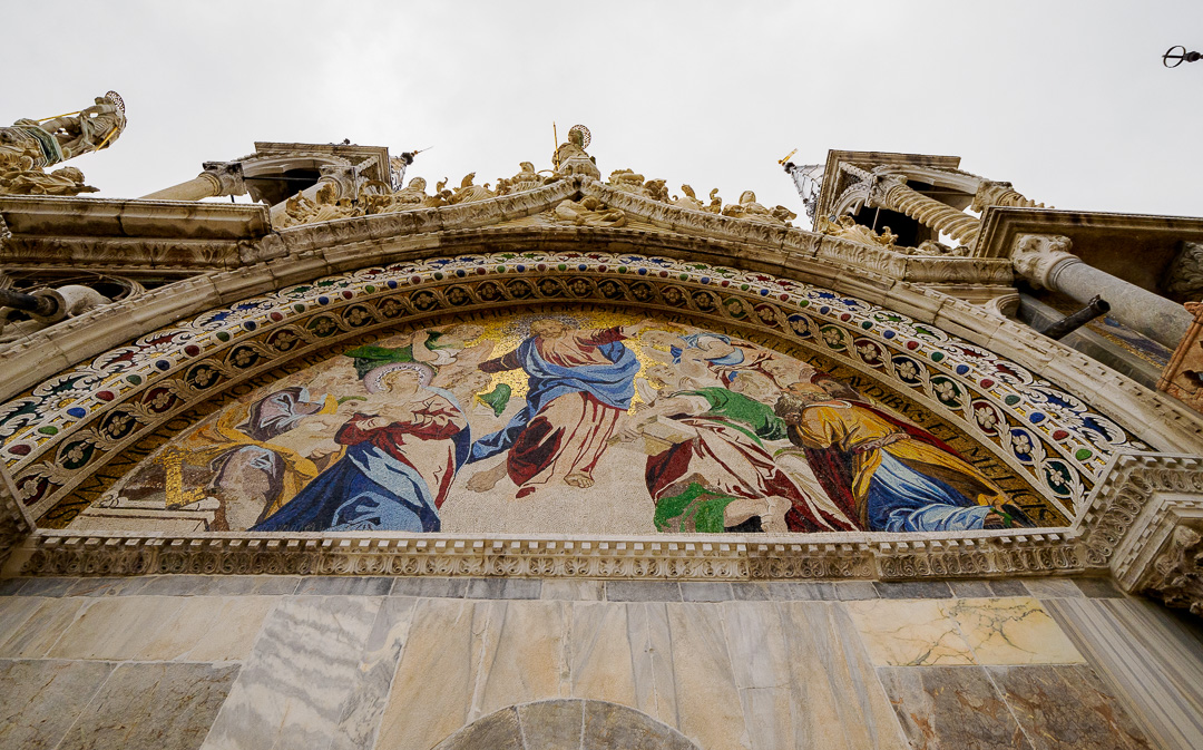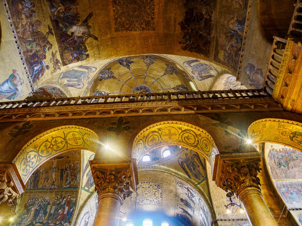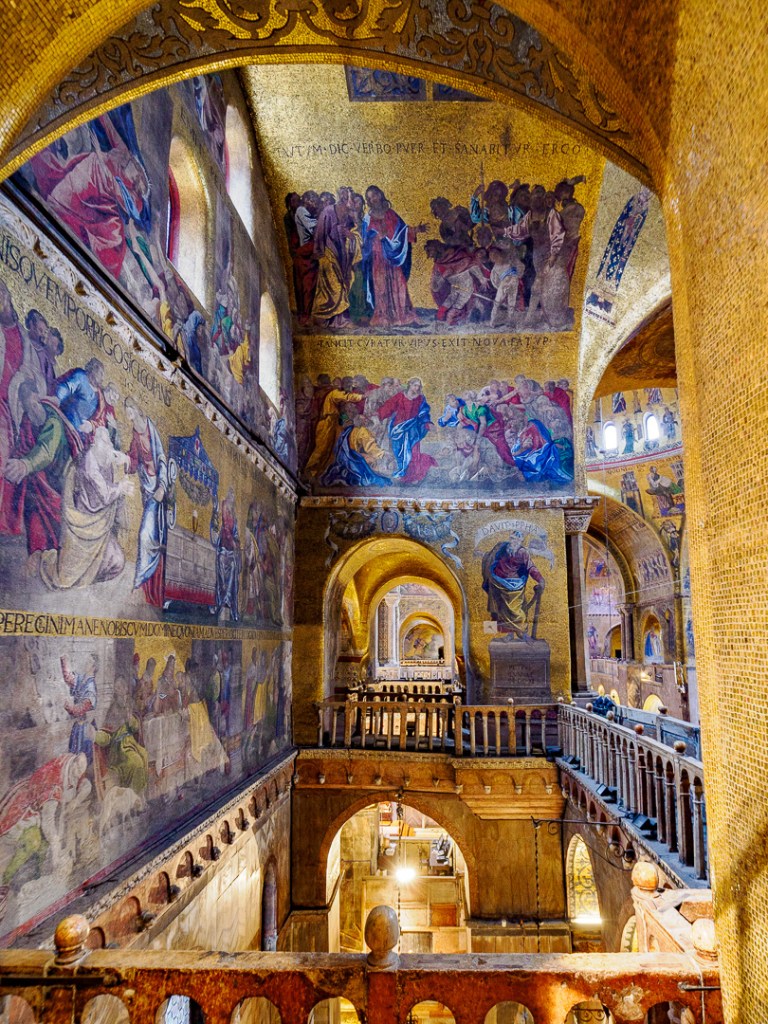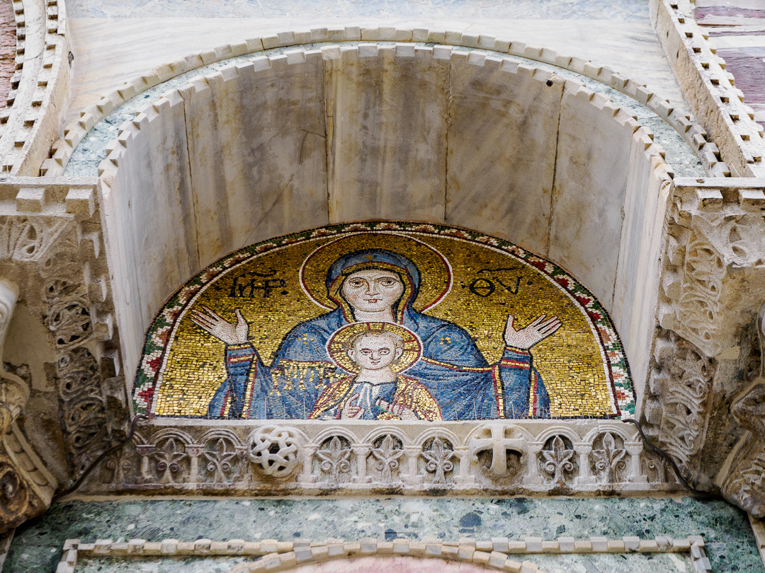 Towards the end of the day, we noticed that the usually long queues for entry into St Marks, had disappeared, so we went in. This is another astonishing building, which is quite dark inside, but when you get used to it, you realise that every part of every wall and ceiling is covered by mosaic and all the floors are laid with geometric pattern of coloured marble.