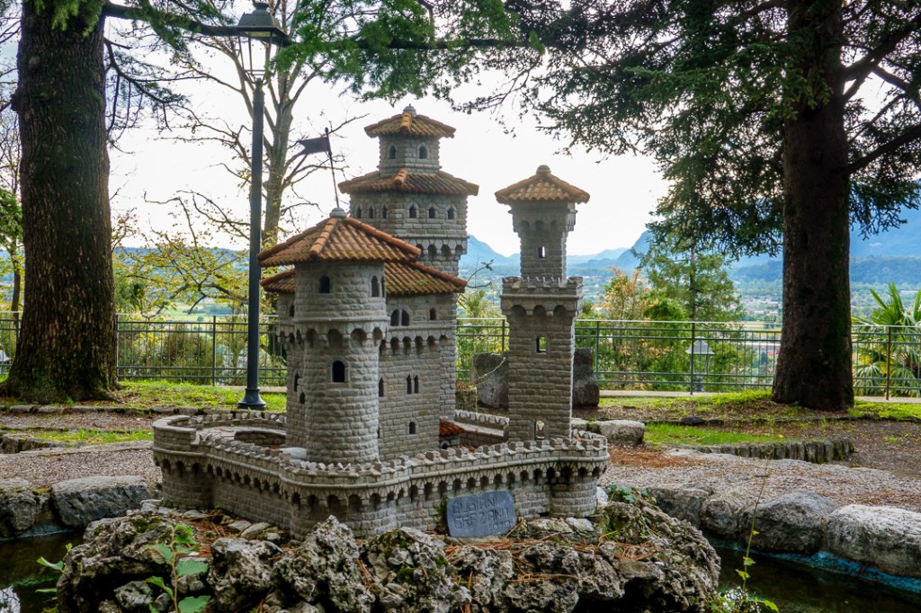 After descending about half-way down, we discovered that you could also climb up the other side of the hill to another terrace, where there was a small ornamental fountain with a model castle in the middle. This terrace provided alternative views of the surrounding countryside.
