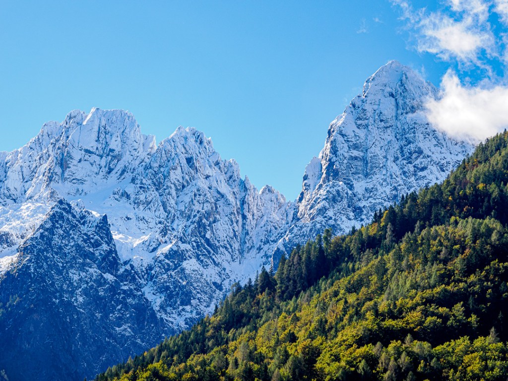Crossing the border from Italy to Slovenia, we are staying the night at a motorhome aire at Bled, a small resort town with a beautiful lake and an 11th century castle. Along the way, we passed some spectacular scenery: