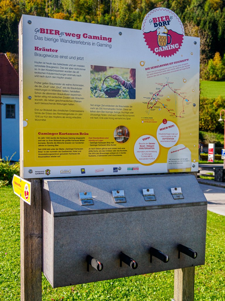 Across the road from the abbey there is this contraption, which is part of the “Beer Weg” or Beer Way. There is a brewery in the town and here, you are able to smell samples of different odours which presumably make up a part of the brewers repertoire. We experienced several smells, including orange and lemon.
