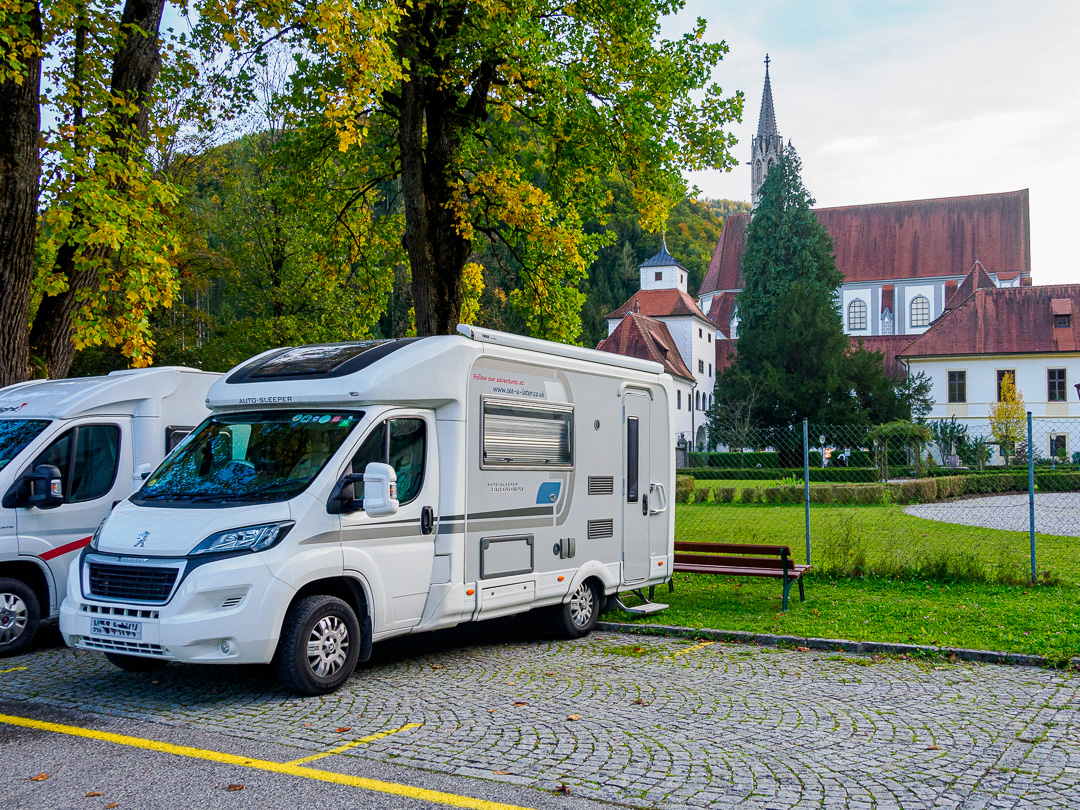 No, not a computer-based activity in this case, but a small and charming town which has a river running through it. Our park-up for the night is on a community provided stellplatz with designated space for 5 motorhomes at the end of a car park, right next door to an old monastery. There are excellent facilities, all free, but a donation is requested via the honesty box.