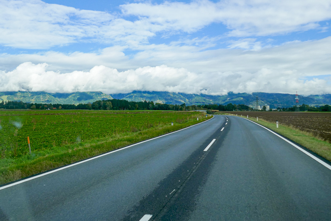 The roads were excellent, well made, straight in places, but with some very steep ups and downs. There were high viaducts and very wiggly bits thrown in. We drove through industrial, pastural and mountainous areas. The weather was kind too.