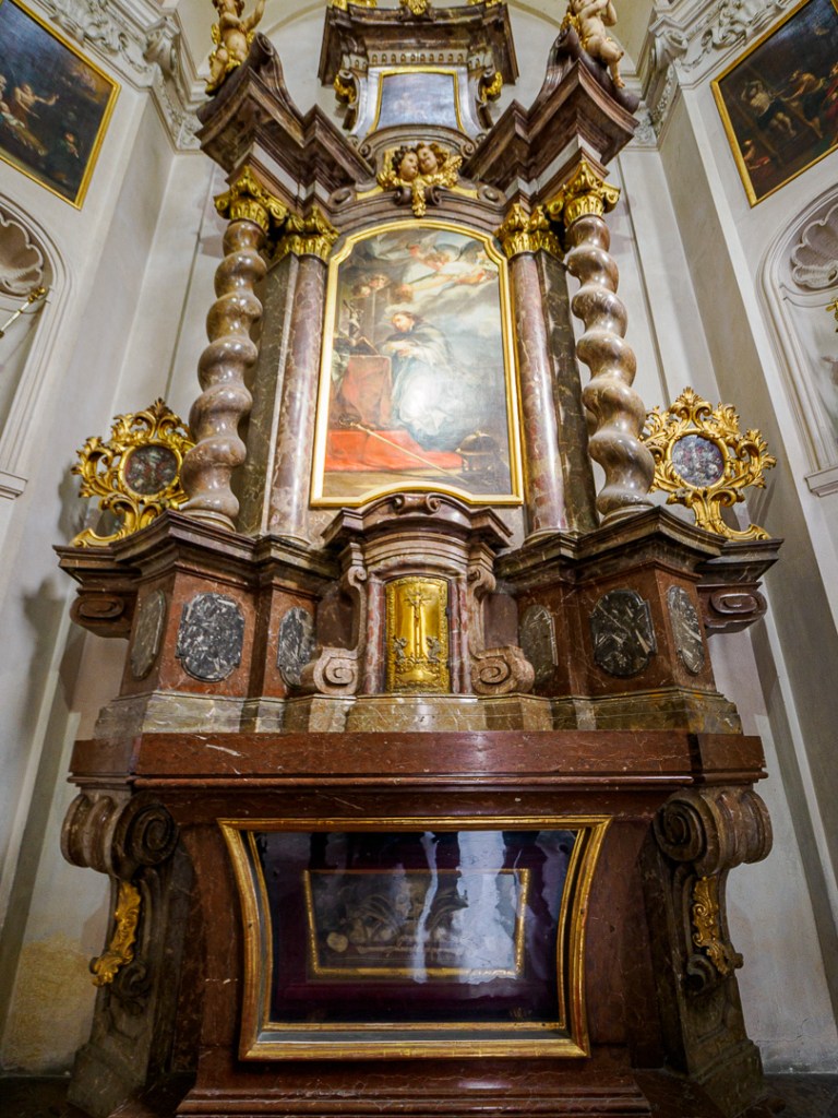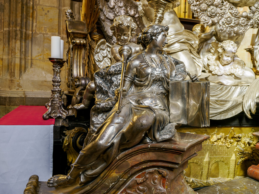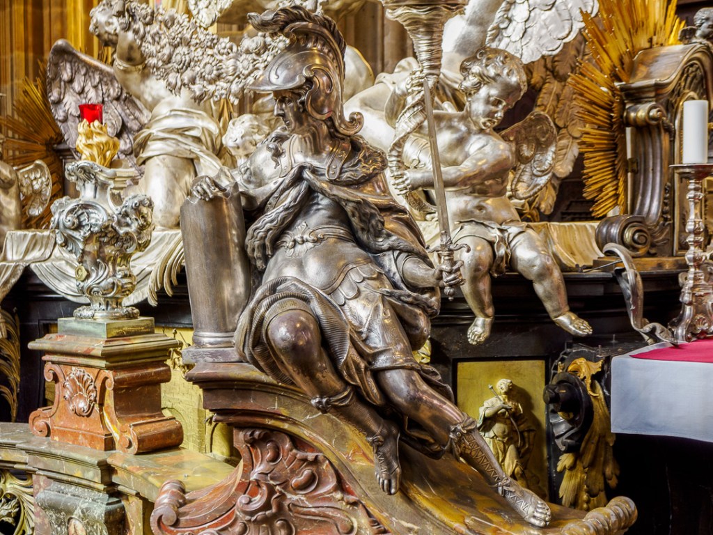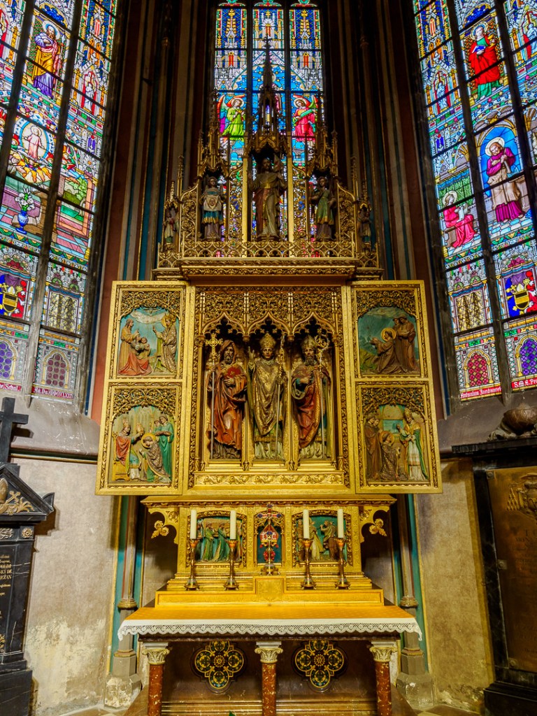 Inside, the cathedral is astonishingly decorated in a range of different styles. The gothic theme is maintained, with high vaulted ceilings and arched aisles, but there are many side chapels and memorials to dead dignitaries with loads of “bling”.