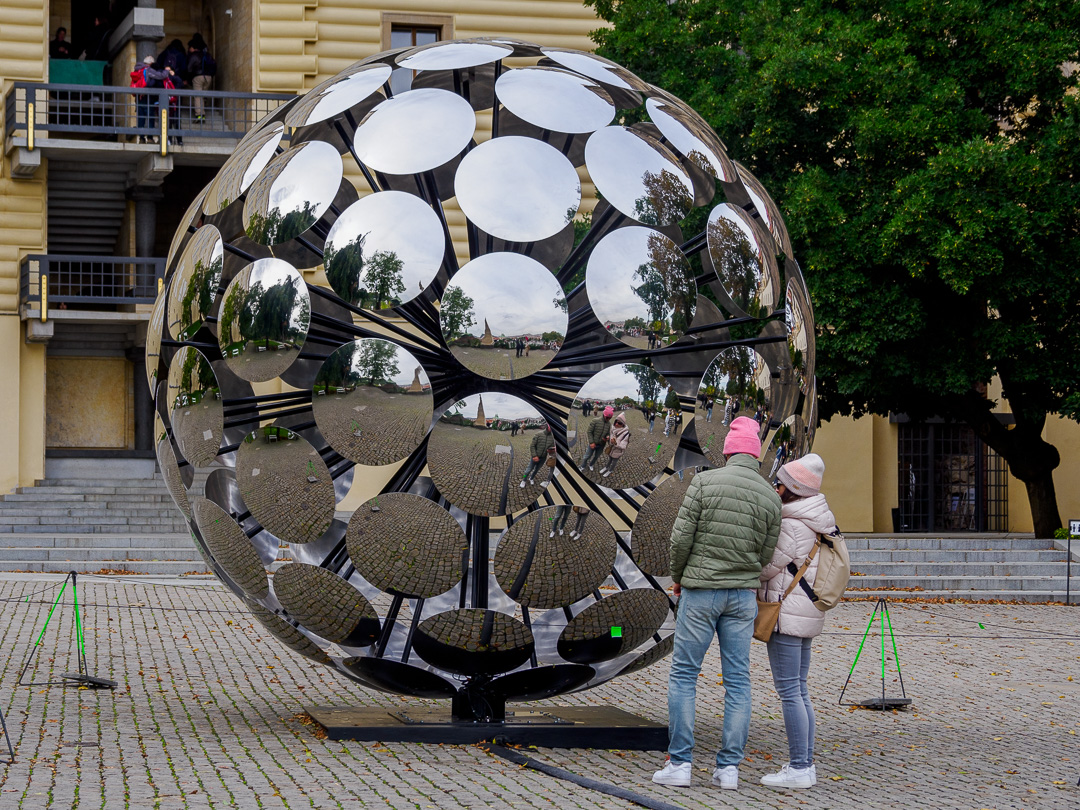 In the eastern garden area, there is a large sculpture and from the terrace you get a fine view over the city: