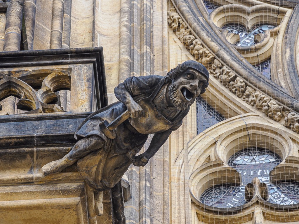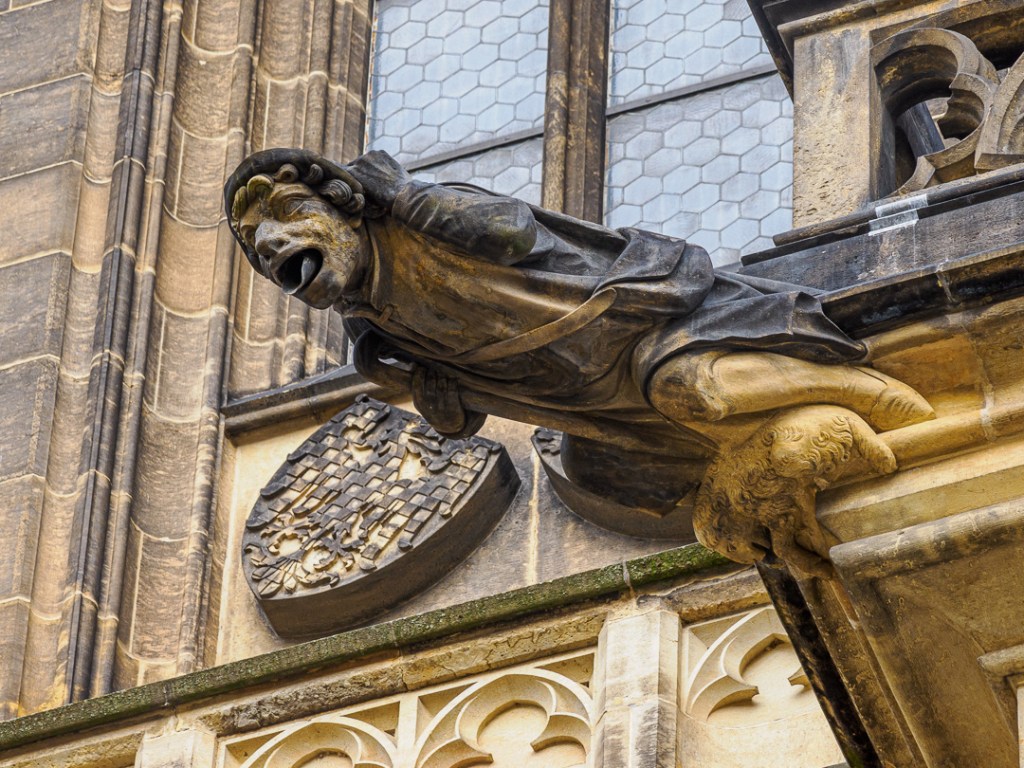 An archway to the left of the above picture, takes you through to the main castle courtyard, where the cathedral is. You are immediately greeted by an enormous, gothic, decorated end wall with gargoyles and other stone figures: