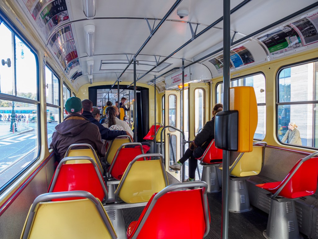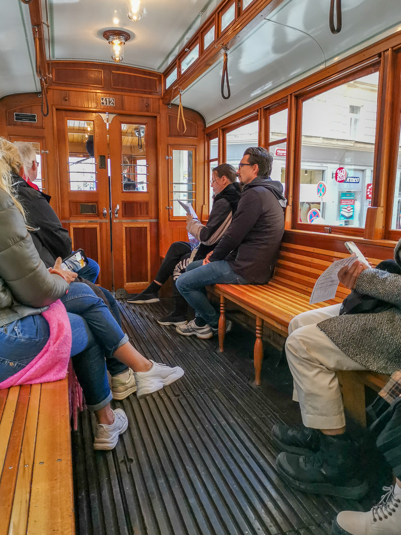 The 1304 tram has been beautifully restored, but the seats are a bit hard: