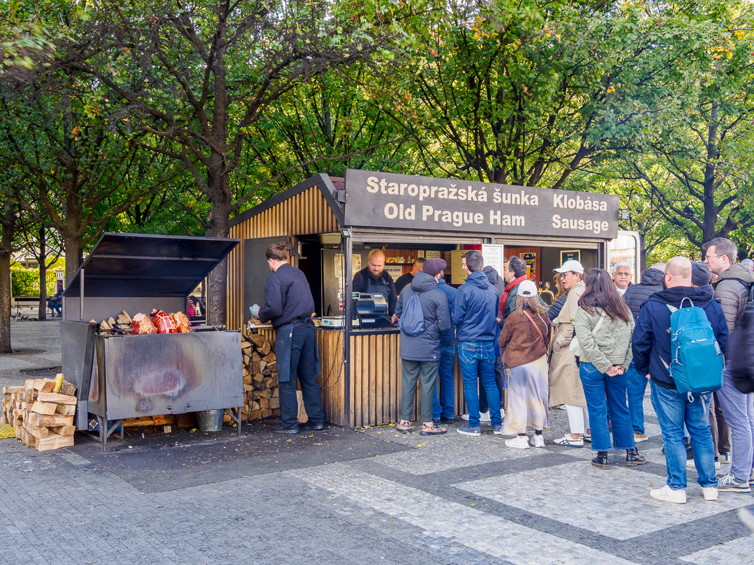 As expected in a tourism hotspot, there are many vendors of food and souvenirs, but “Old Prague Ham” does not sound like a good advertisement: