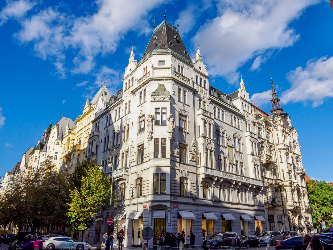 Many of the following buildings are posh shops (Prada, Gucci, Chanel, Jimmy Choo, Yves St Laurent, to name but few) down at street level: