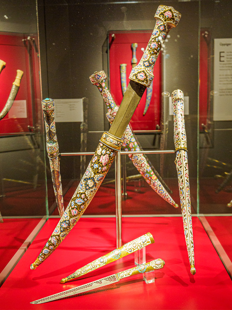 At the time of our visit there was a special exhibition of Damask weaponry, mainly swords and daggers. Whilst this is really not my thing, I can appreciate the skill and craftsmanship which has gone into each of these.