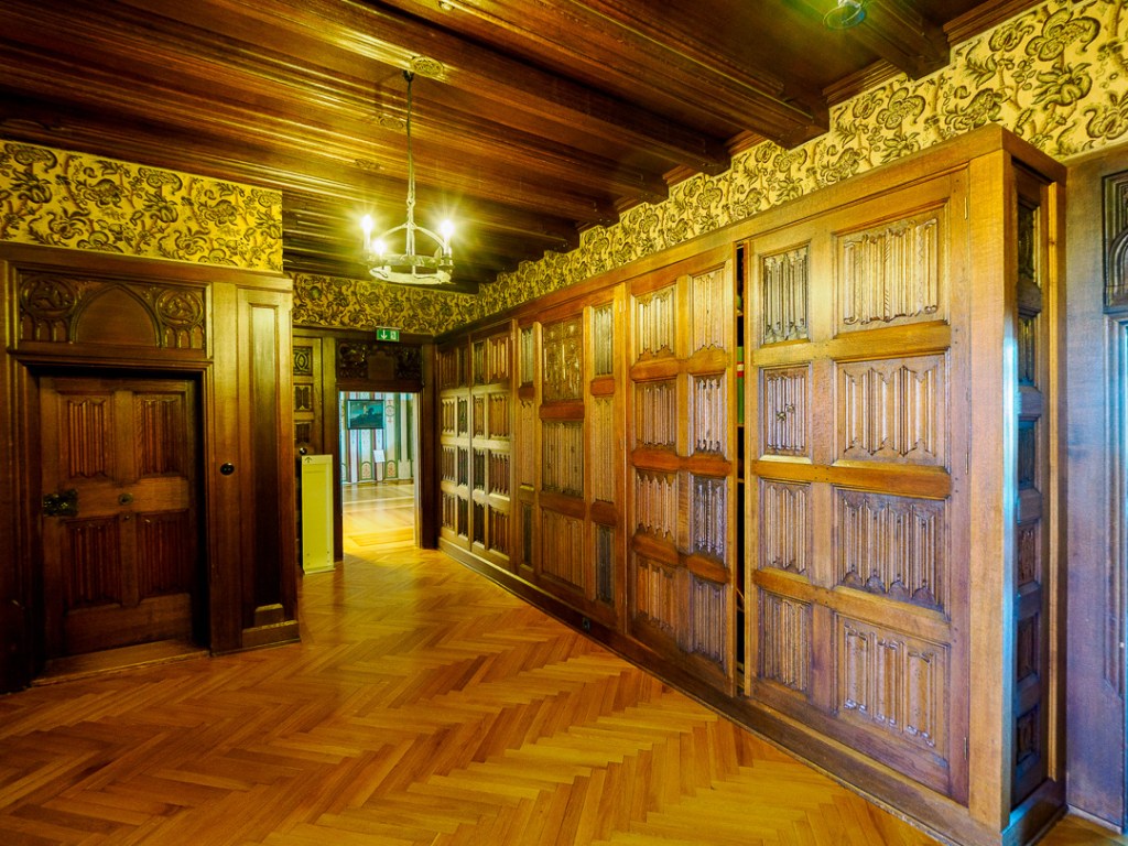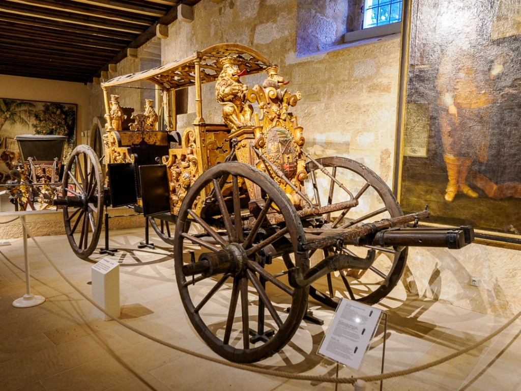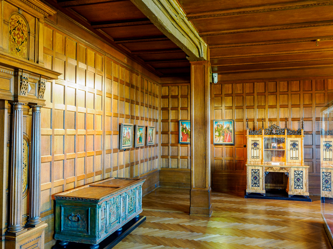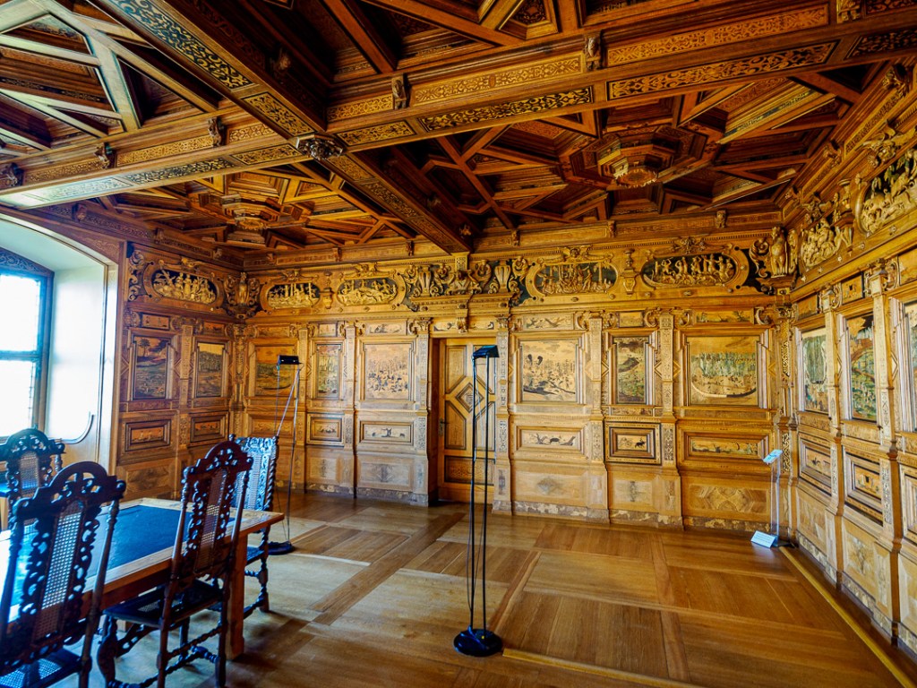 One room in particular, has the wow factor. The wooden carved panelling depicts many 3D scenes which all revolve around the theme of hunting: