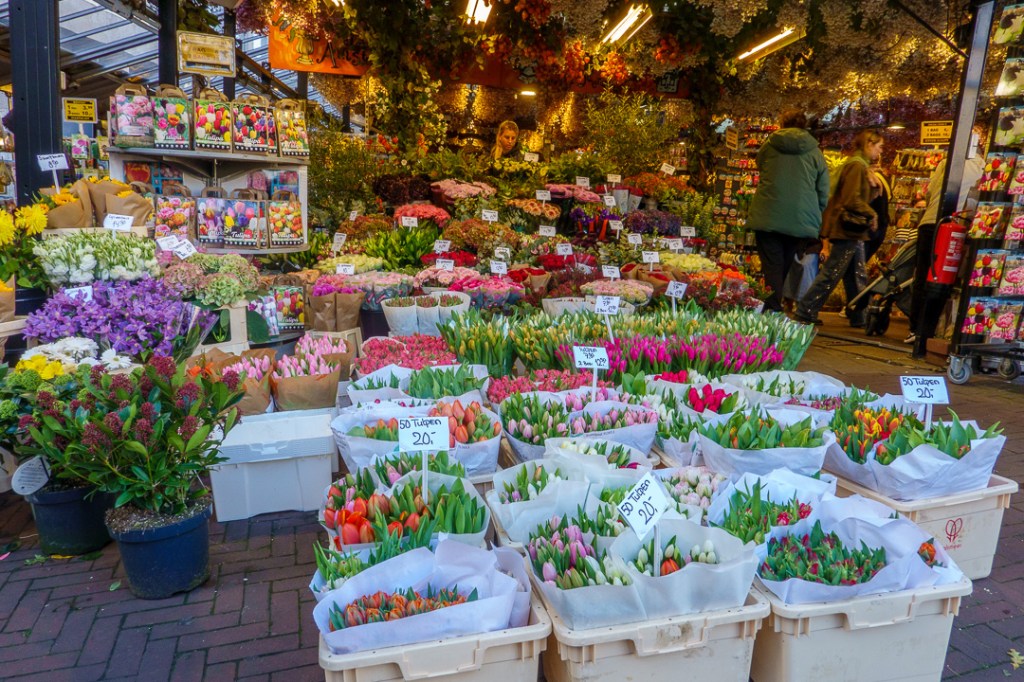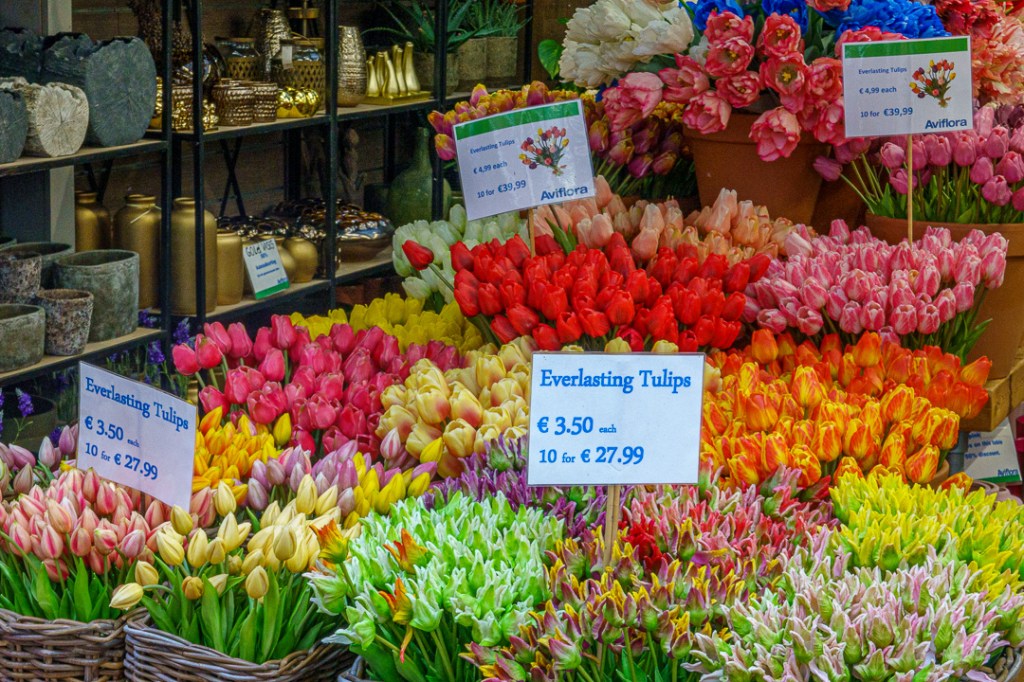 We visited the flower market, which mostly seemed to be selling tulip bulbs and wooden tulips. They are surprisingly realistic, but I guess they would ultimately just collect dust. The real things, which were also available, would be discarded first.