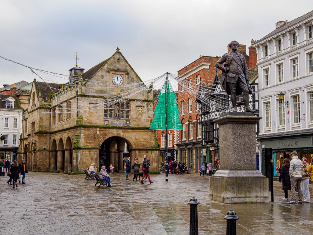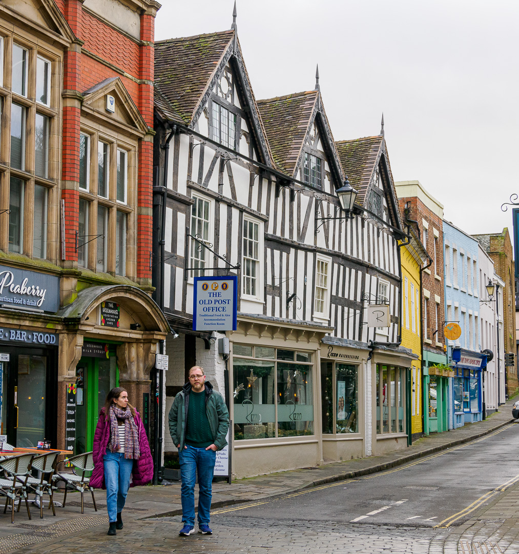 Shrewsbury is a medieval town, built on a small hill which occupies a loop in the path of the River Severn. The town is also the birthplace of the naturalist, Charles Darwin who is famous for his work on evolutionary biology. It has a largely unchanged town centre street-plan with over 660 listed buildings, many of them timber-framed.