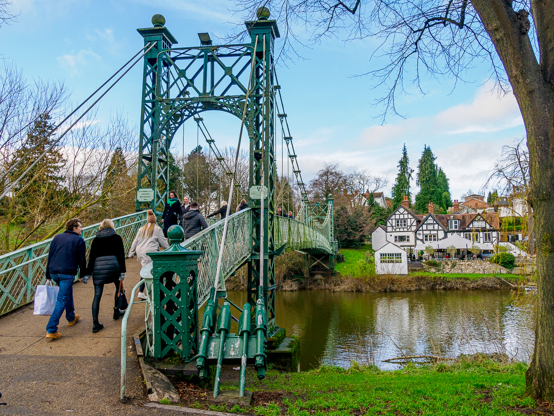 There is a large green space in the loop of the river below the town, called: “The Quarry”. A pedestrian suspension bridge takes you over the river here, but the bridge moves around quite a lot as you cross.