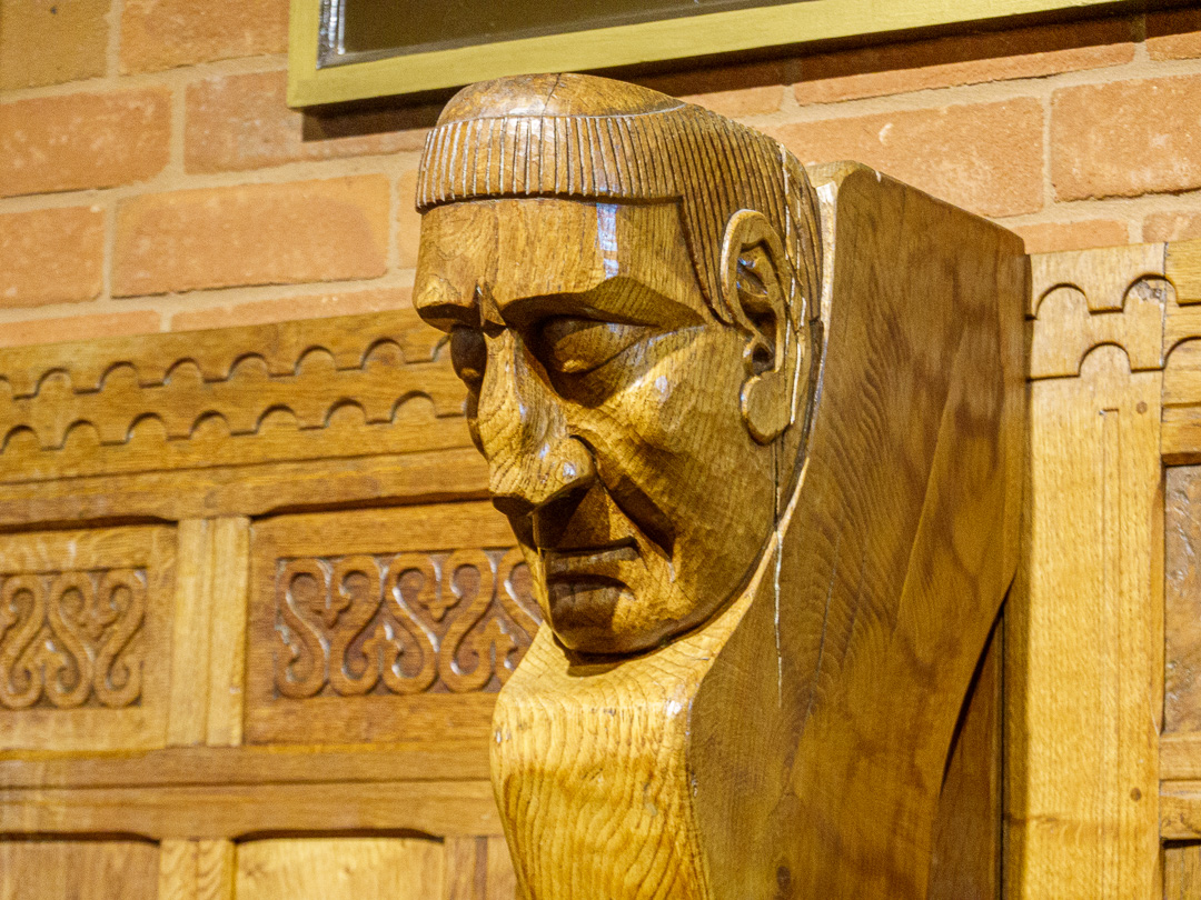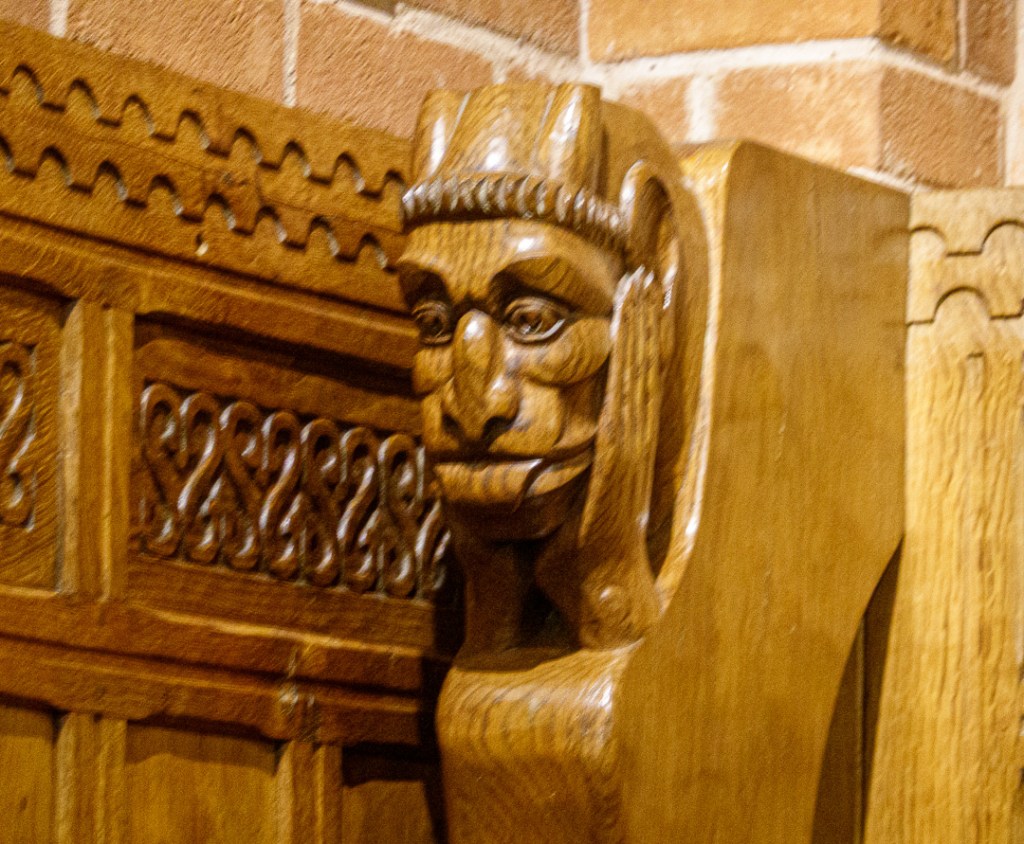 We had booked a lunch-time meal in the Red Lion Inn which is immediately in front of the Joules Brewery and ate in The Grattan Robert “Mouseman” Thompson Boardroom, which, according to the plaque below, is unique in that much of the furniture was made by Robert Thompson himself.