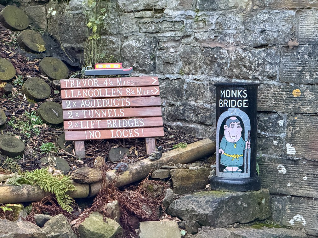 The canal towpath is used both as a cycle-path and footpath. It is mostly good, but gets a bit squelchy in places. Along the way, we passed the end of the Glynn Valley Tramway, which used to bring stone and stone setts for transfer to barges on the canal. Today, there is not much to be seen except the wall, which is a scheduled monument.