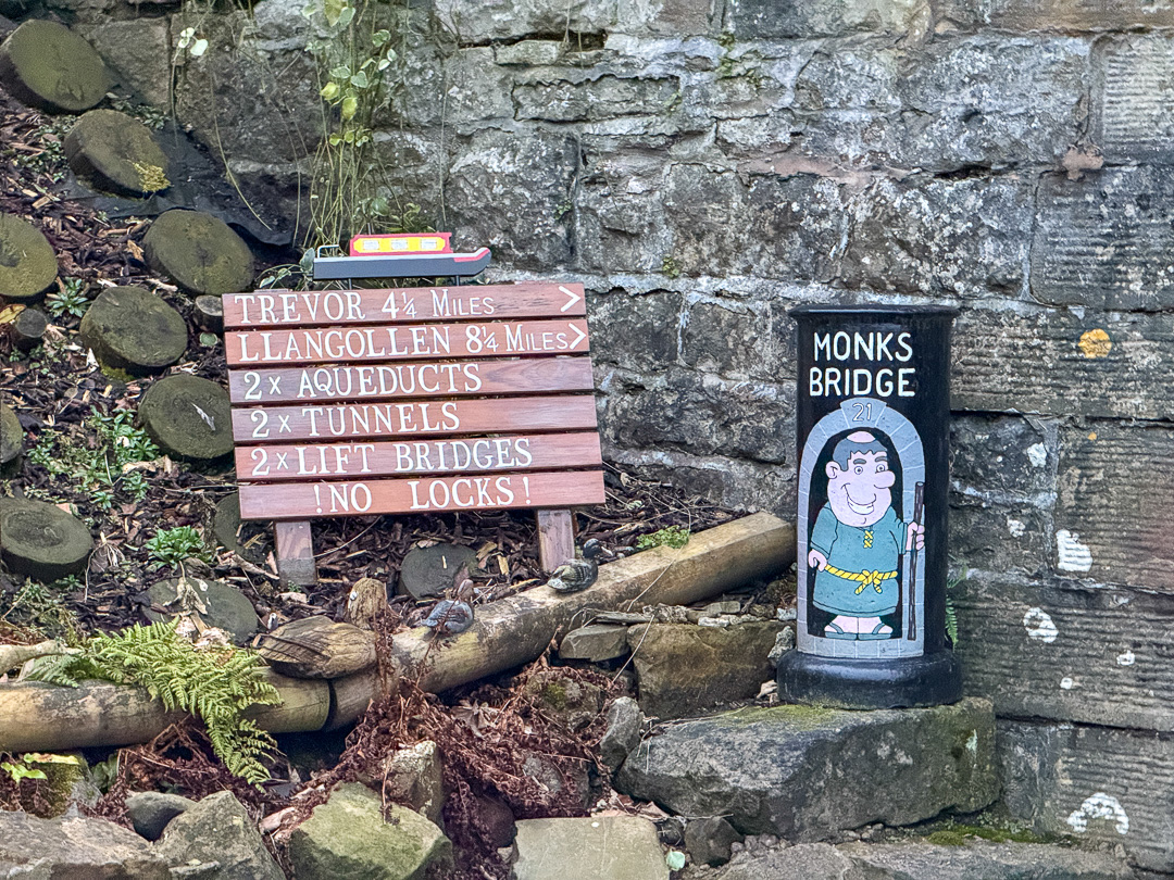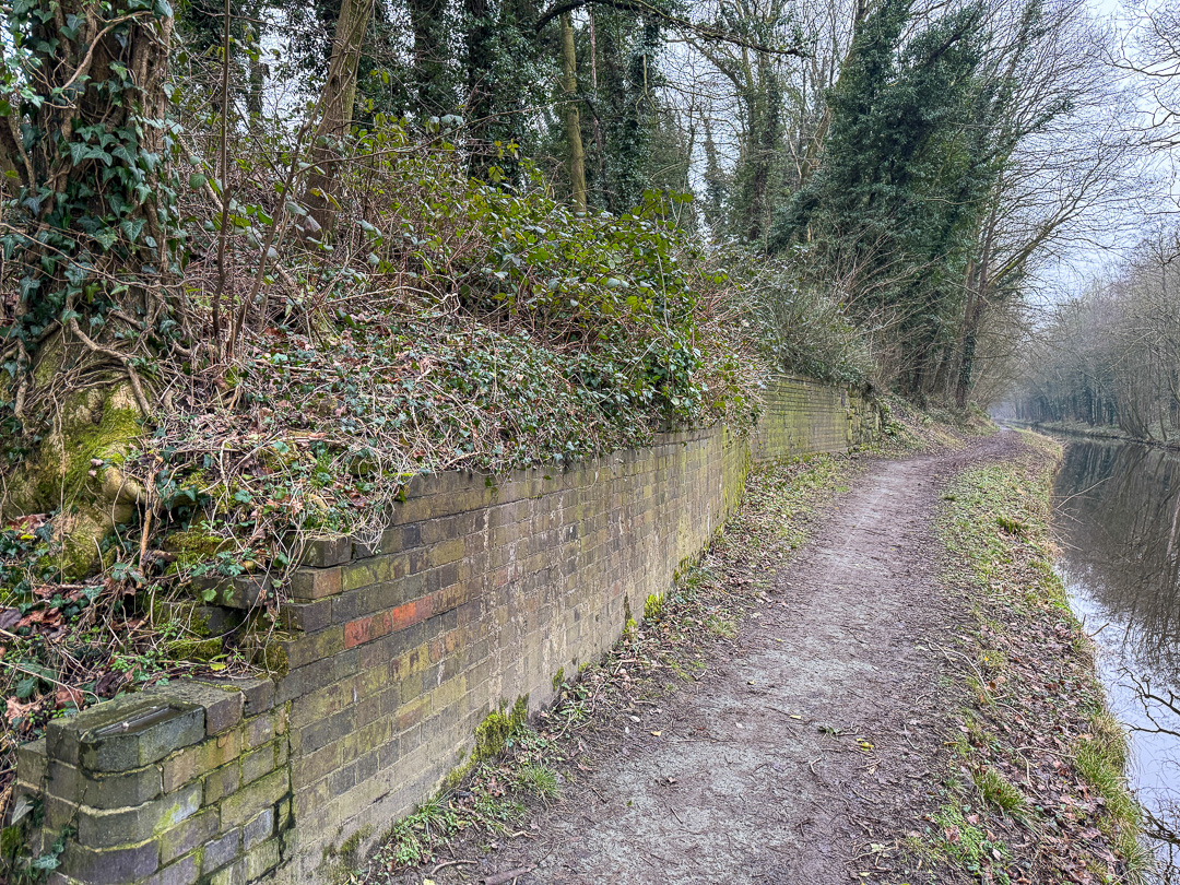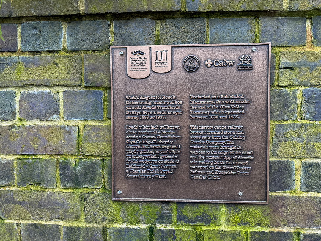 The canal towpath is used both as a cycle-path and footpath. It is mostly good, but gets a bit squelchy in places. Along the way, we passed the end of the Glynn Valley Tramway, which used to bring stone and stone setts for transfer to barges on the canal. Today, there is not much to be seen except the wall, which is a scheduled monument.
