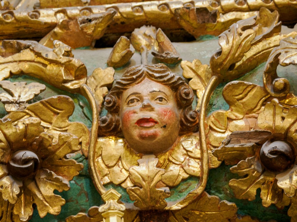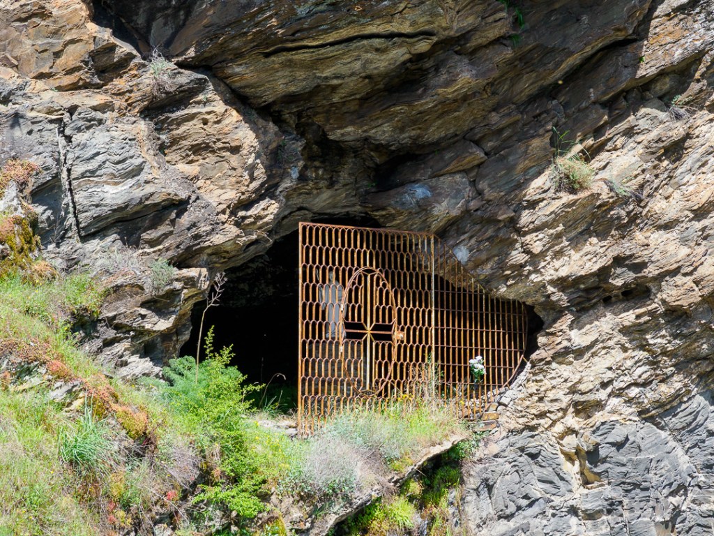 Alongside the road, just before the bridge, there is a cave with a shrine. Unfortunately I do not know who the statue depicts, but it appears to be a bishop with a crozier and mitre.
