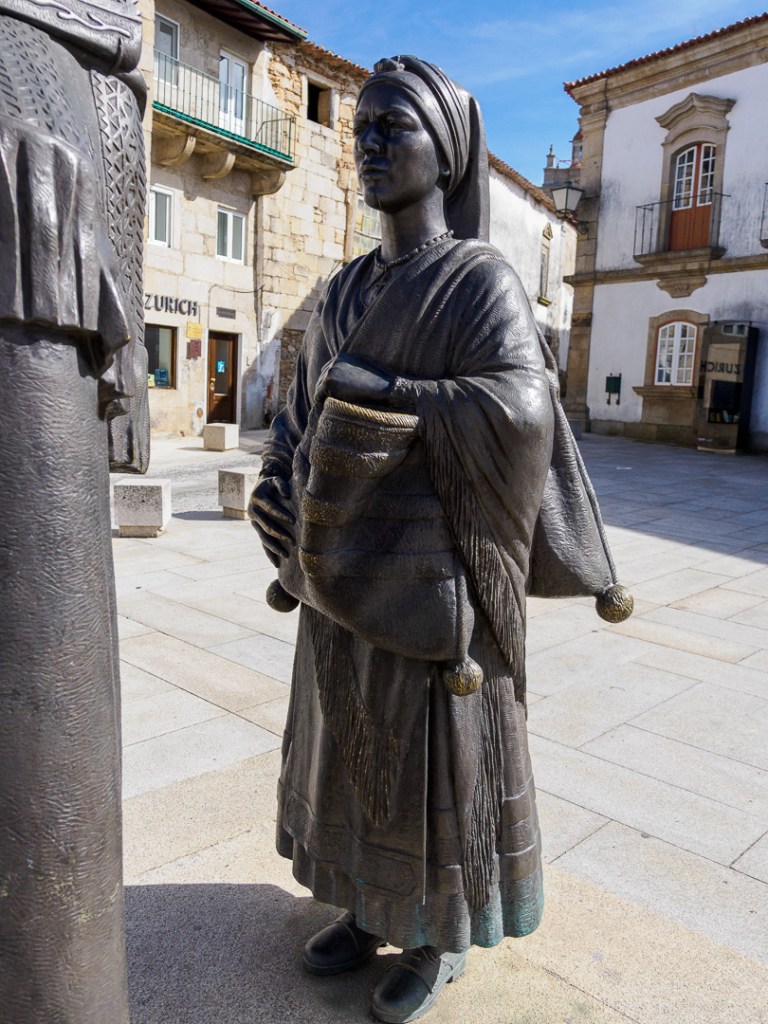 The town has made a feature of traditional styles of dress, and in addition to a mural and a pair of bronzes in the town square, there is an exhibition in the tourist office: