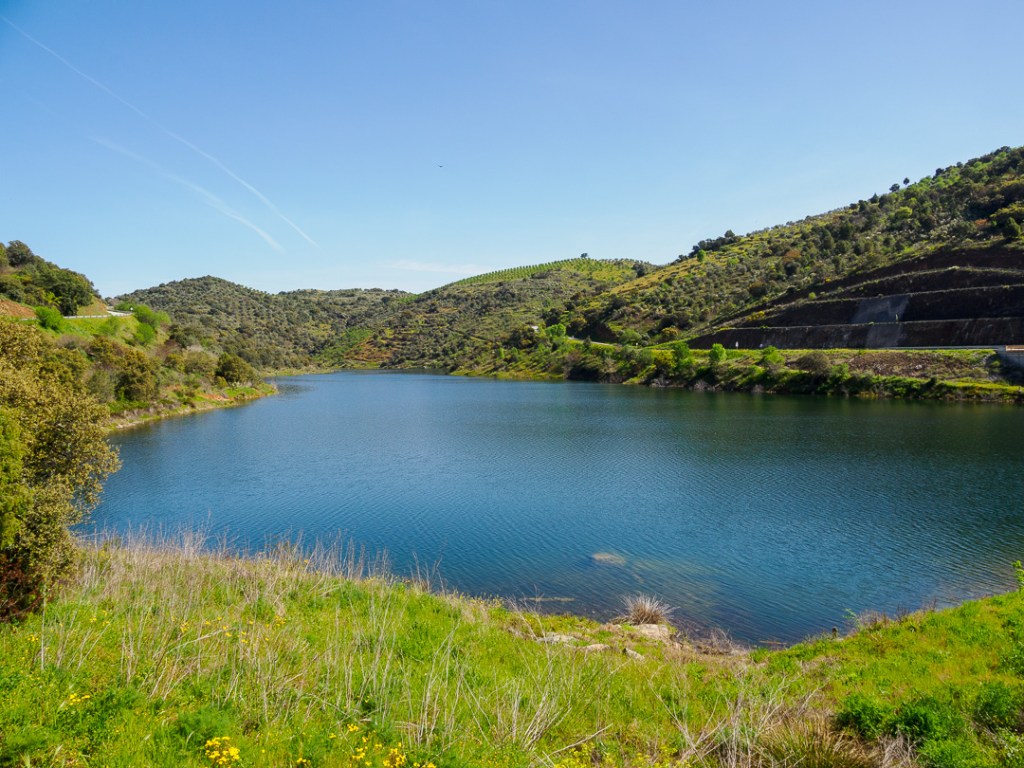 As we travelled towards Torre de Moncorvo, the terrain became more hilly and in places, dramatic, so of course we stopped to take a closer look. We also passed some lakes and high bridges.