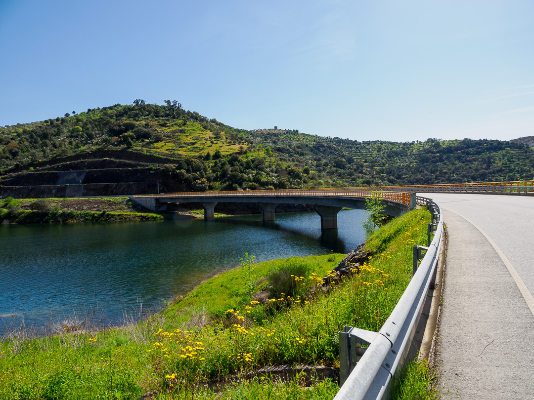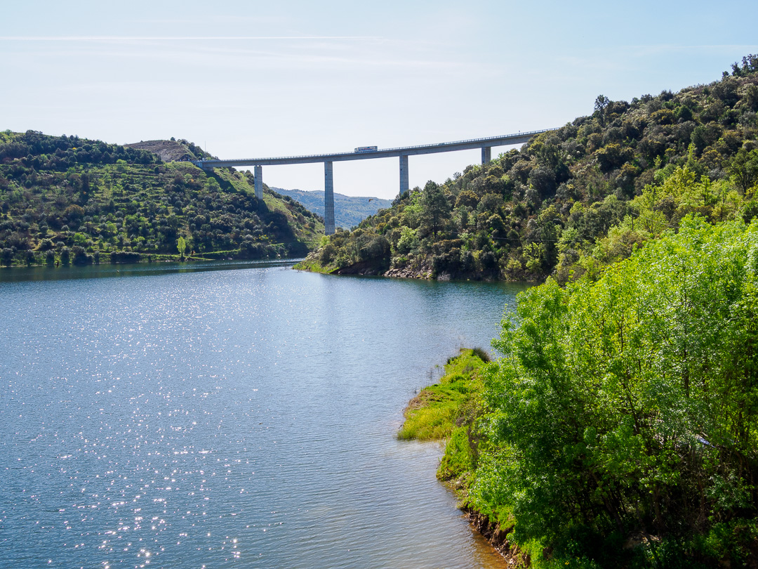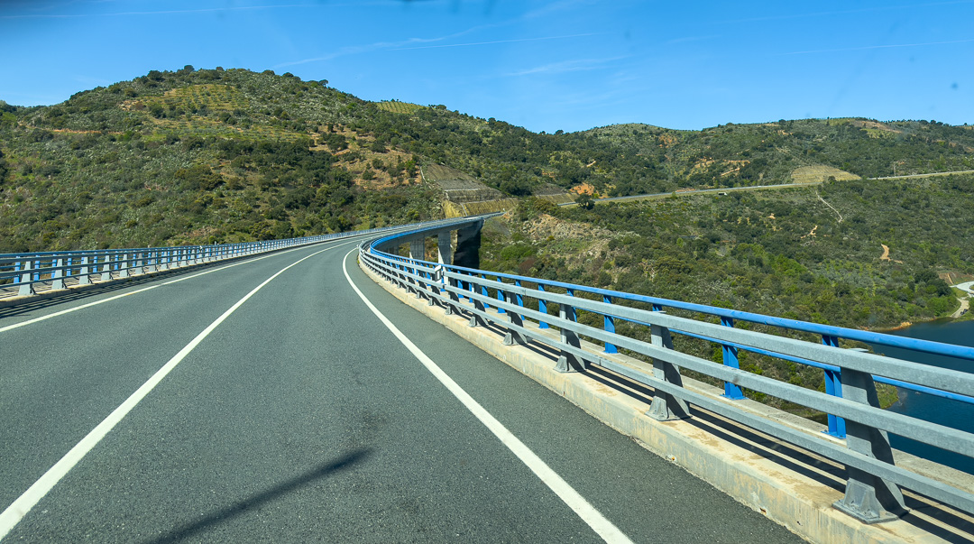 As we travelled towards Torre de Moncorvo, the terrain became more hilly and in places, dramatic, so of course we stopped to take a closer look. We also passed some lakes and high bridges.