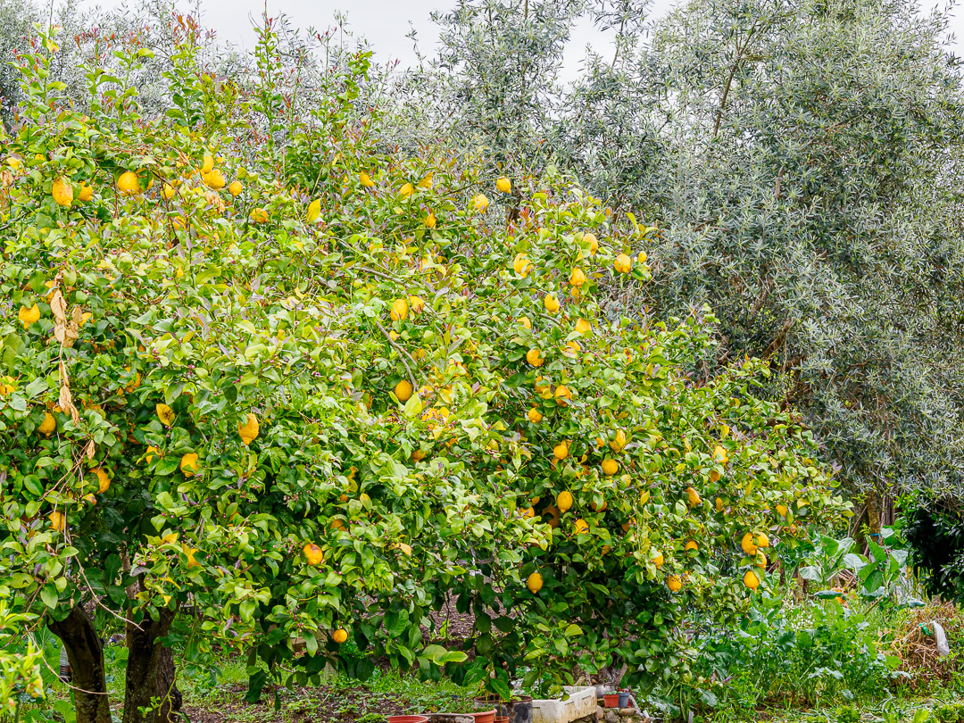 Sheep can be seen grazing the fields in which fruit and olive trees are planted: