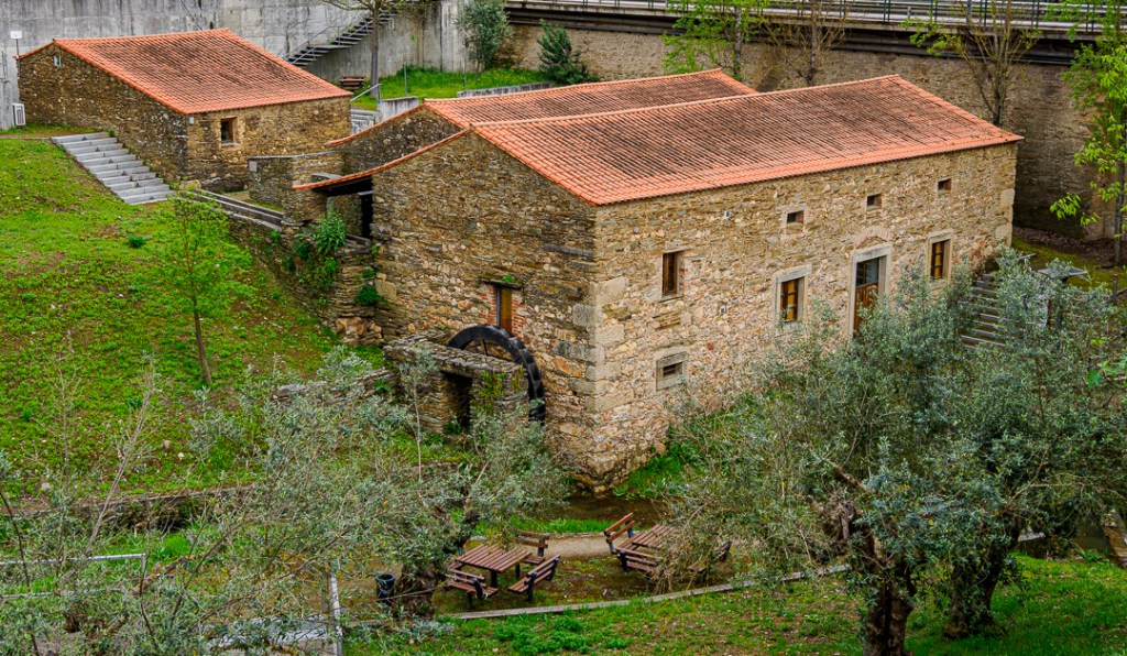 The path emerged alongside an old, apparently restored watermill.