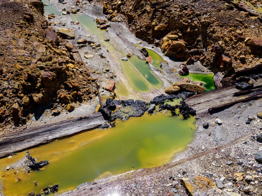 Elsewhere, the surface water is bright green, presumably from the copper content.