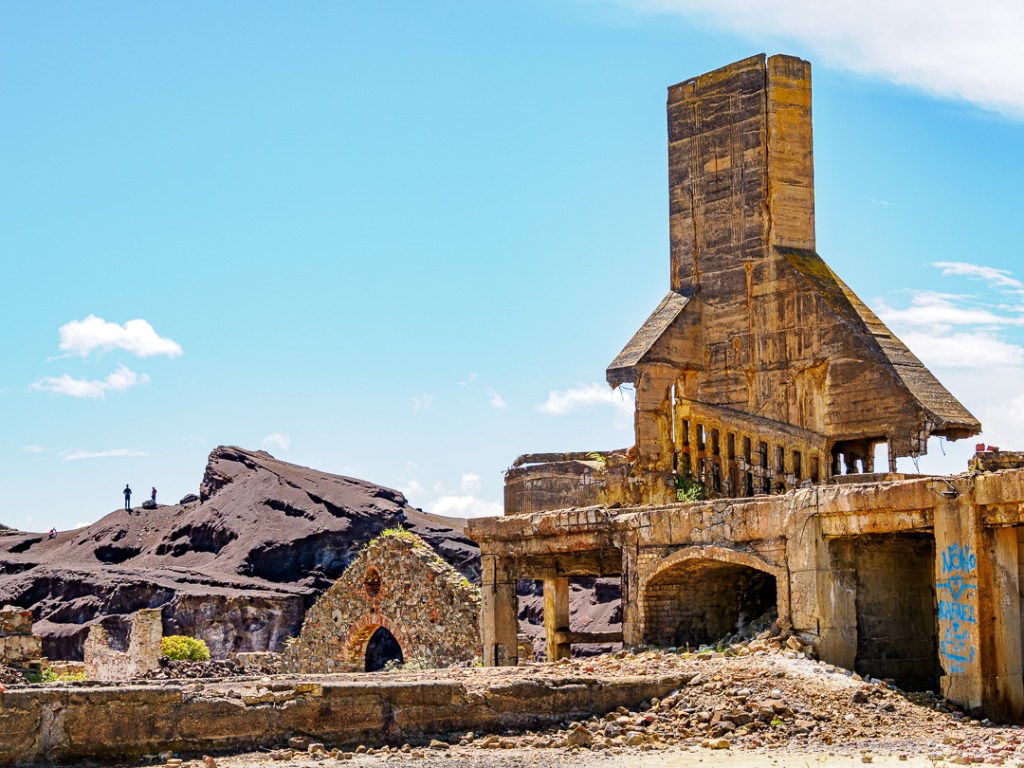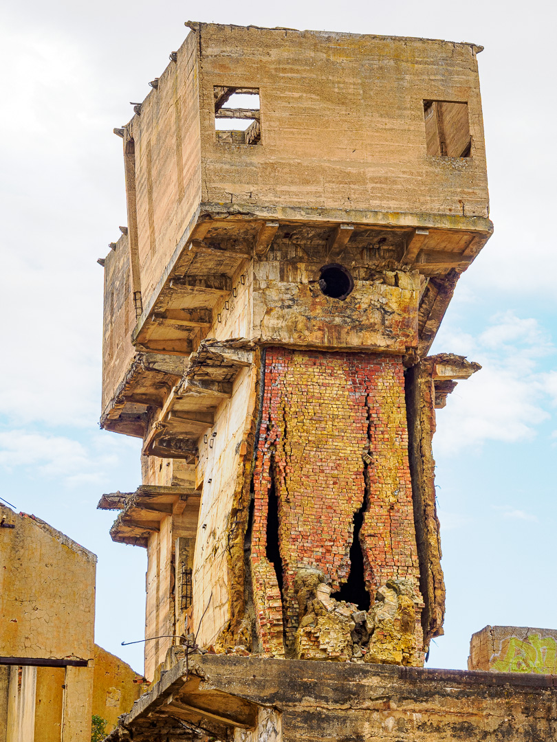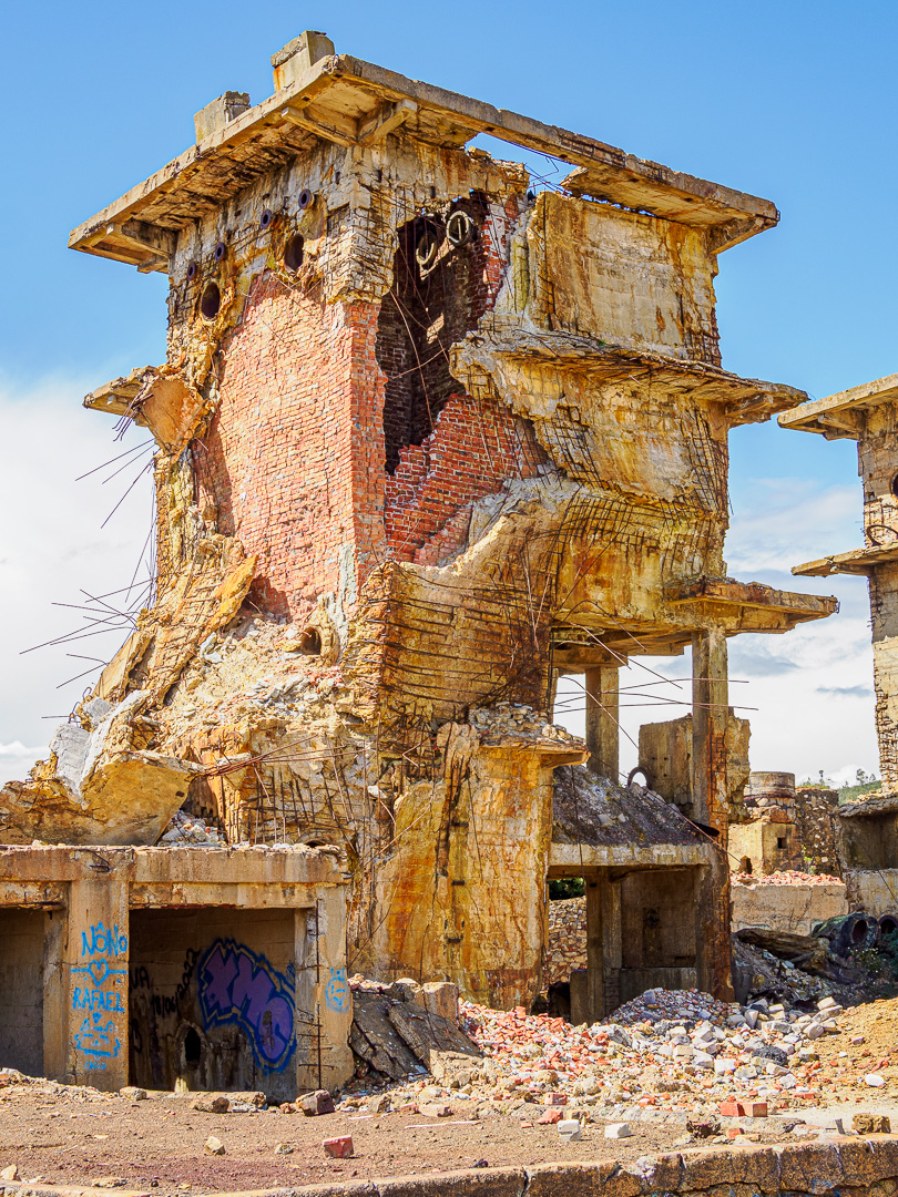 Further down the valley are the remains of the ore processing activities with the amazing, huge tall buildings which appear on the verge of collapse: