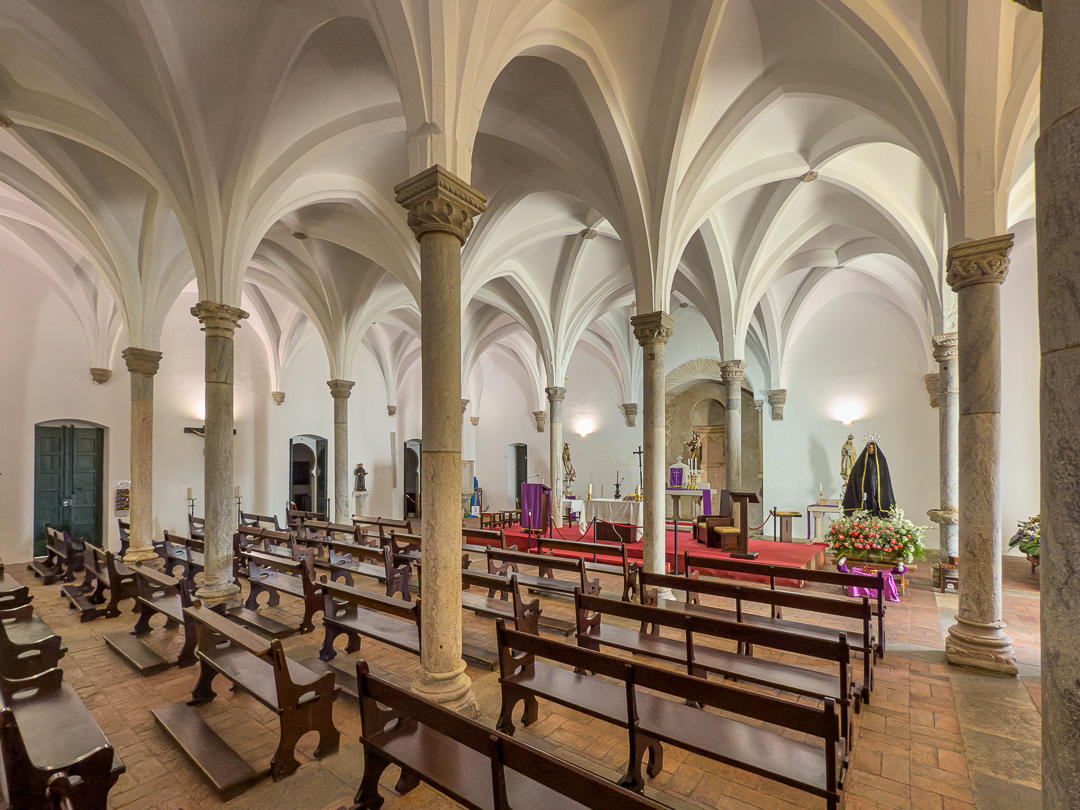 The church clearly shows some islamic influence in its style. Built on the site of a Roman Temple, then around the 4th century, a Christian church. During the 13th century, during the Islamic period, it was converted into a mosque until in 1238, the Lords of the Order of Saint James, made it into a Christian church again.
