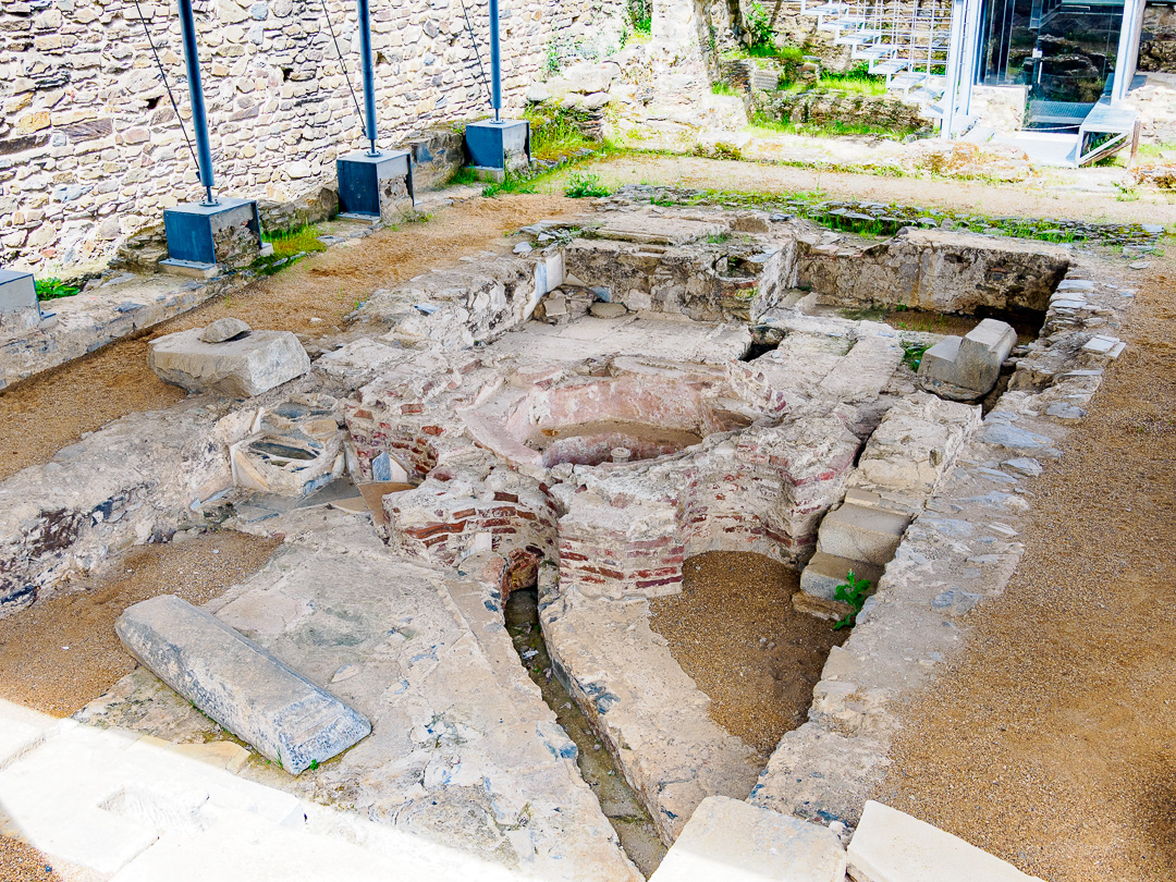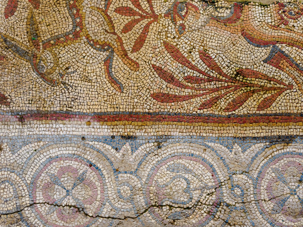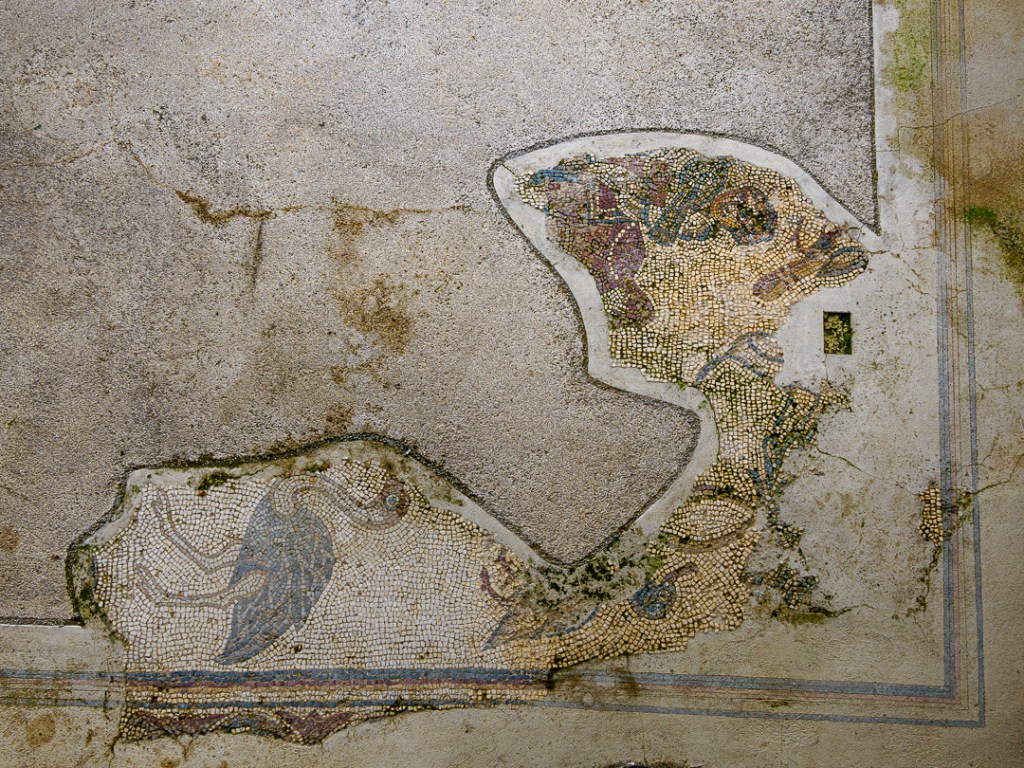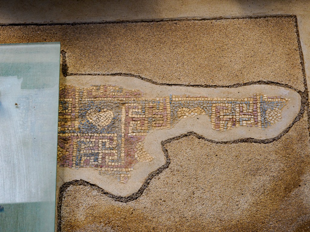 Roman mosaics and a Christian baptismal place, within the Islamic settlement: