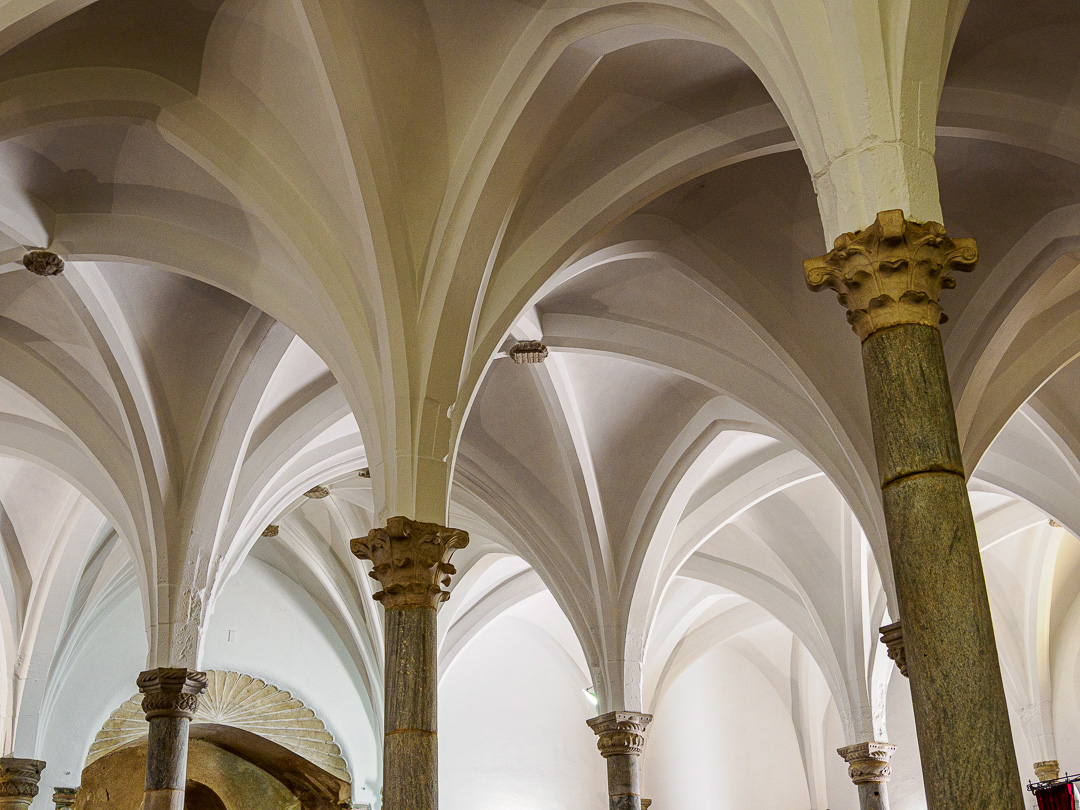 The current vaulted ceiling was constructed around the middle of the 16th century as a part of its restoration as the building had fallen into disrepair.