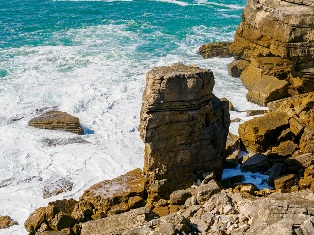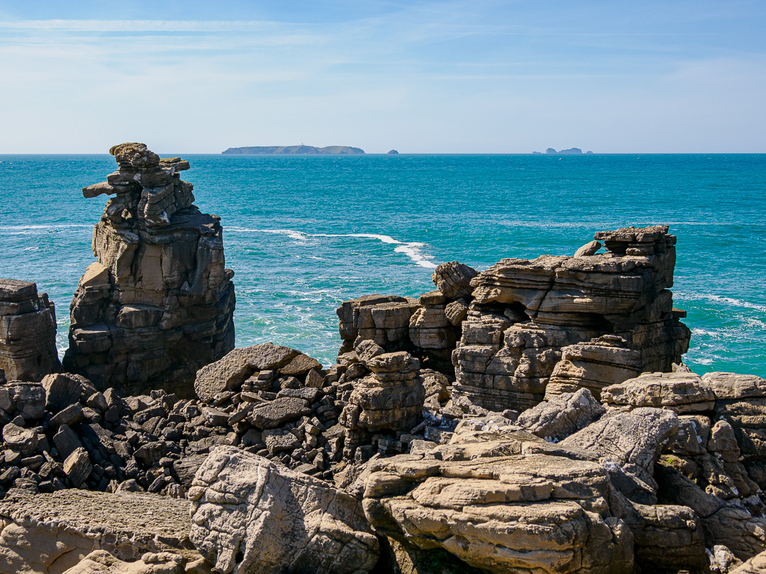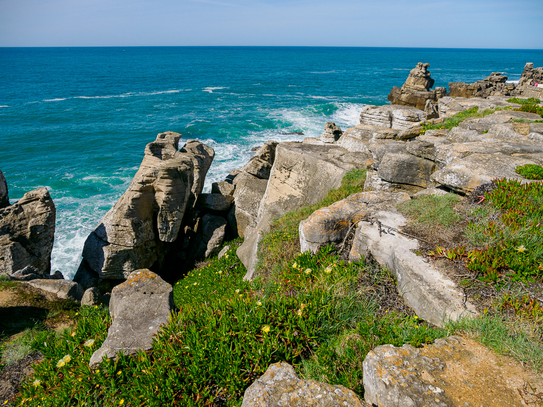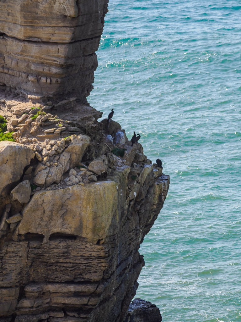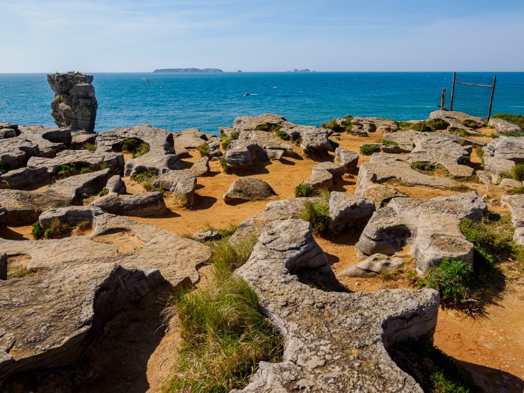 Cabo Carvoeiro is a peninsula with the town of Peniche at the landward end and a defensive fort, which has walls similar to those found on star-forts we have previously visited. Its main attraction for us was the coastline, which is a combination of limestone pavement on top of high sea cliffs. At the far end, there is a lighthouse: