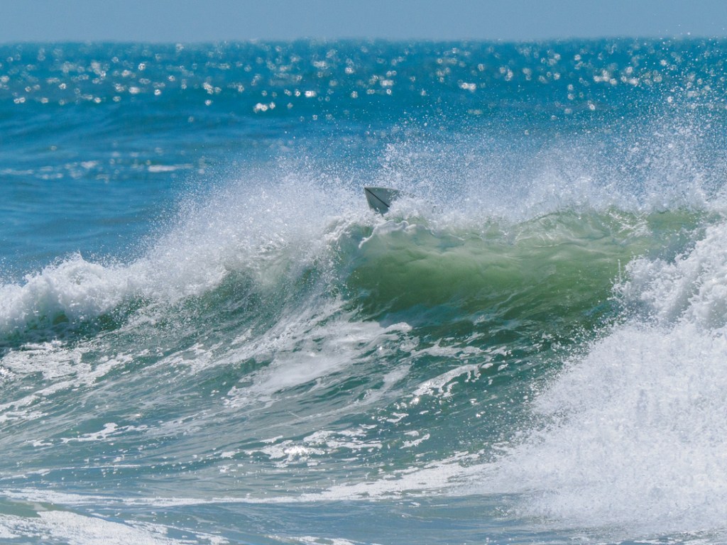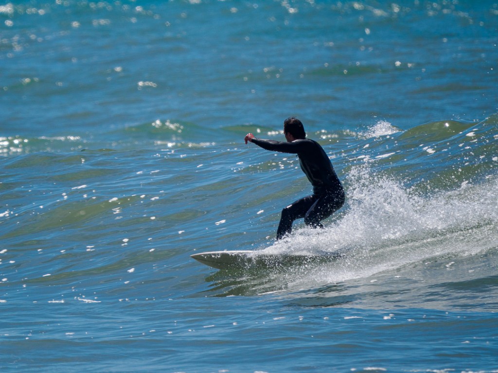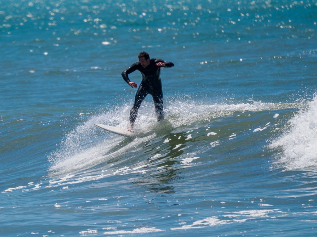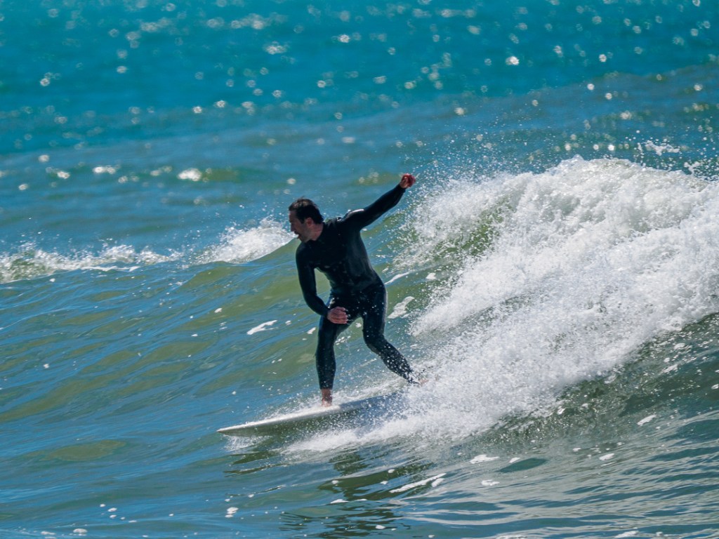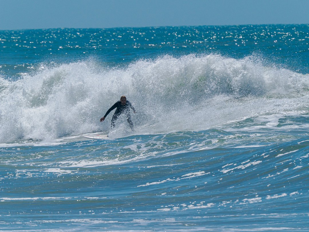Huge Atlantic rollers were crashing onto the sand and there were some surfers taking advantage of the conditions.