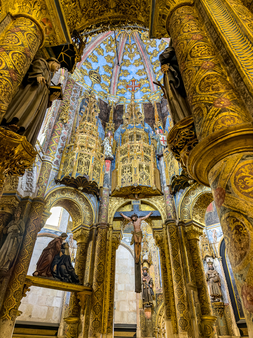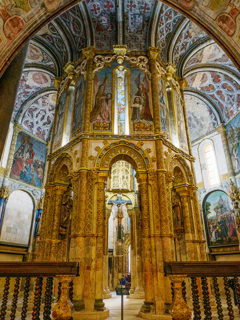 The ancient town of Tomar is known for its castle and convent (oh no not another one!), founded in 1160, which have links to the Knights Templar. The town was originally created inside the walls of the convent, (but of course, it now spreads well beyond), on land granted to the Knights in 1159.