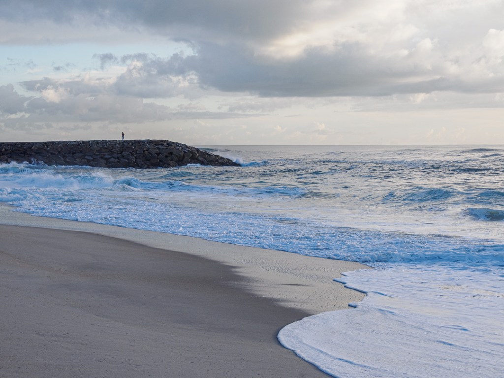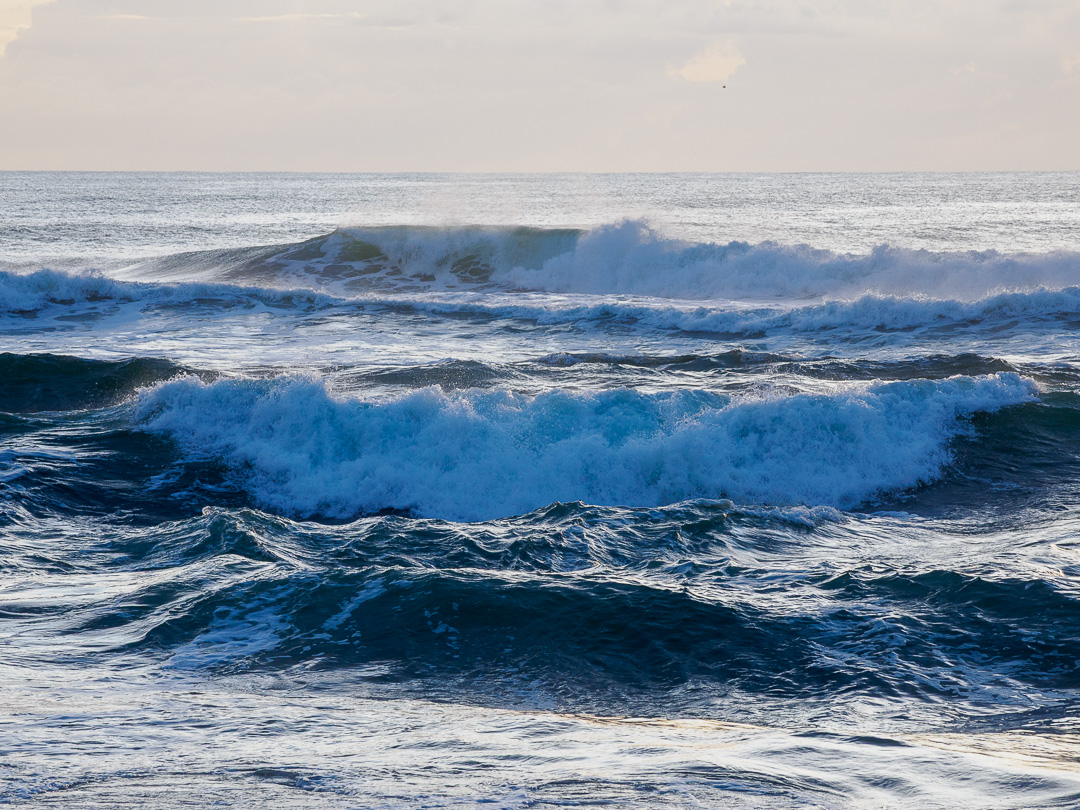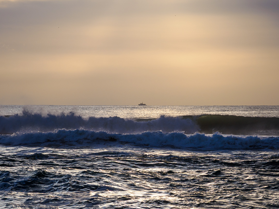There is a very nice beach and there were some really good waves when we went for a walk along it, around sundown. We hoped for a nice sunset, but it was not to be.